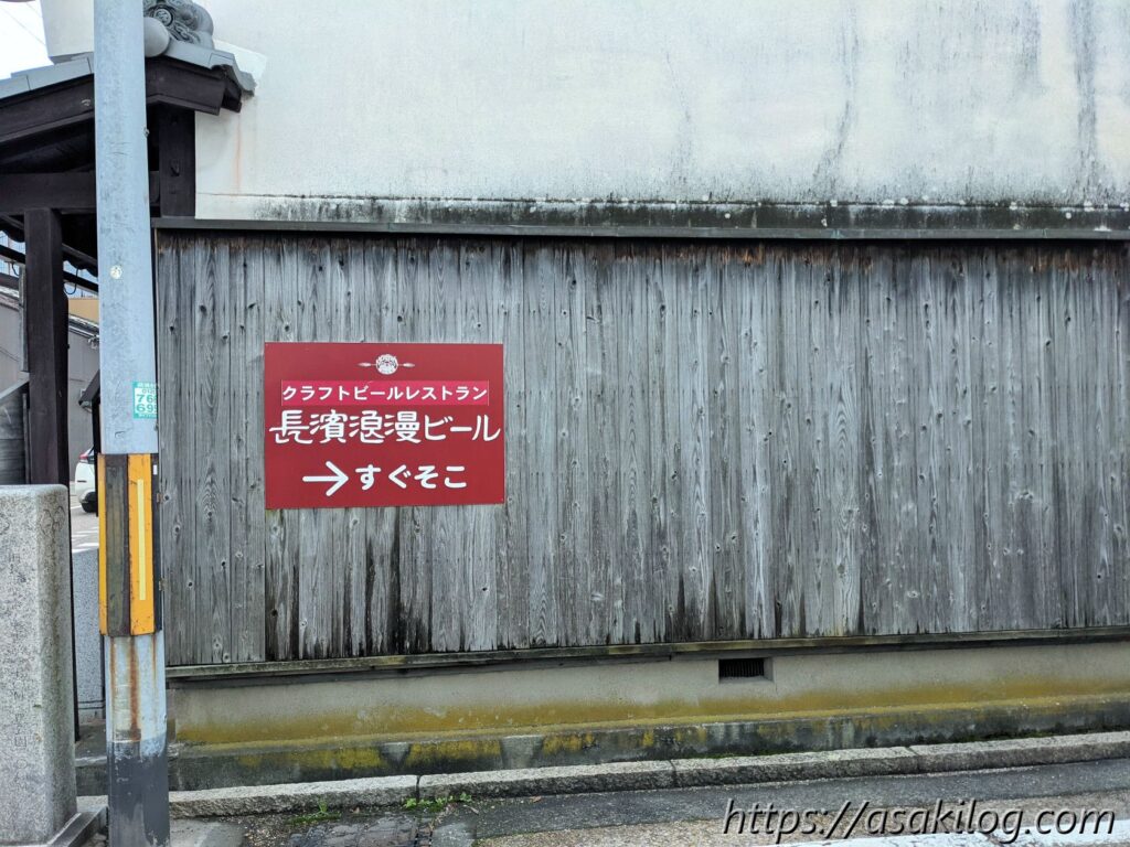 黒壁ガラス館・黒壁AMISUでショッピングを楽しんでから向かったのが、徒歩6分ほどの場所にある「長濱浪漫ビール」。新鮮な生ビールと創作料理が楽しめるビアホールです。今回はここでランチを食べることに。