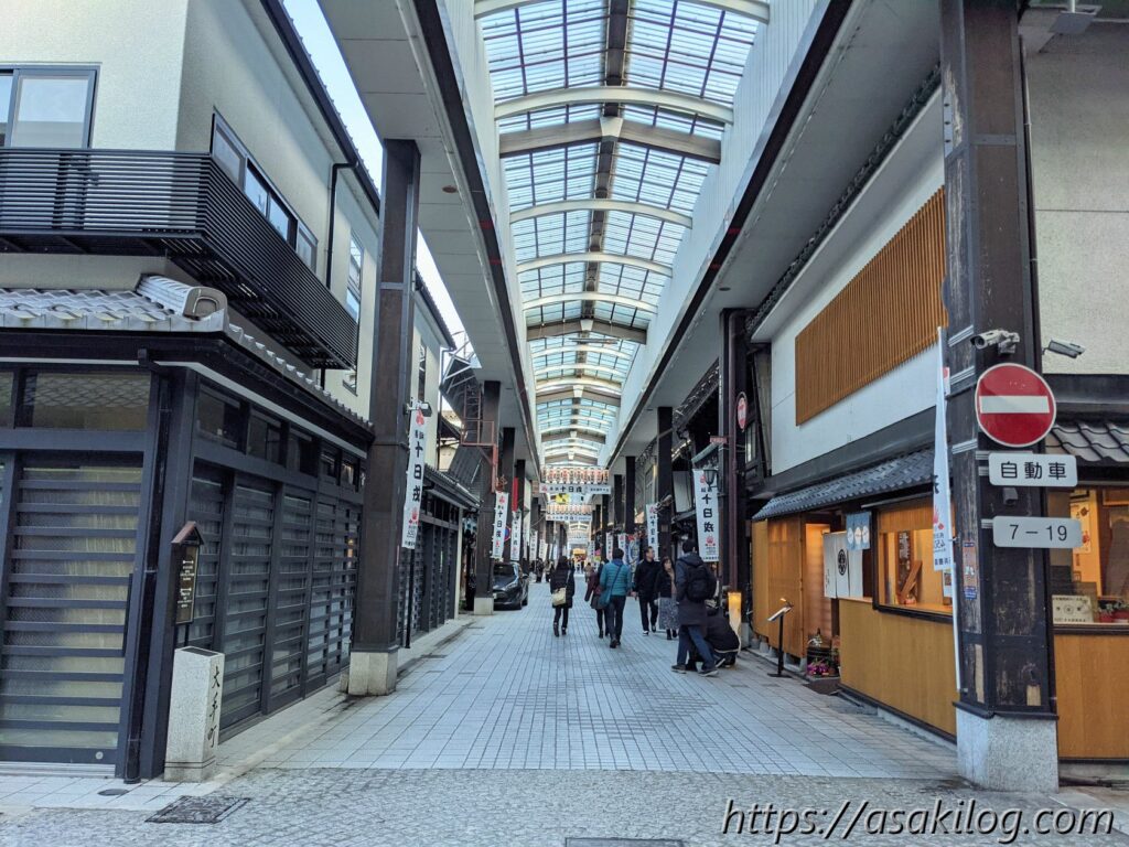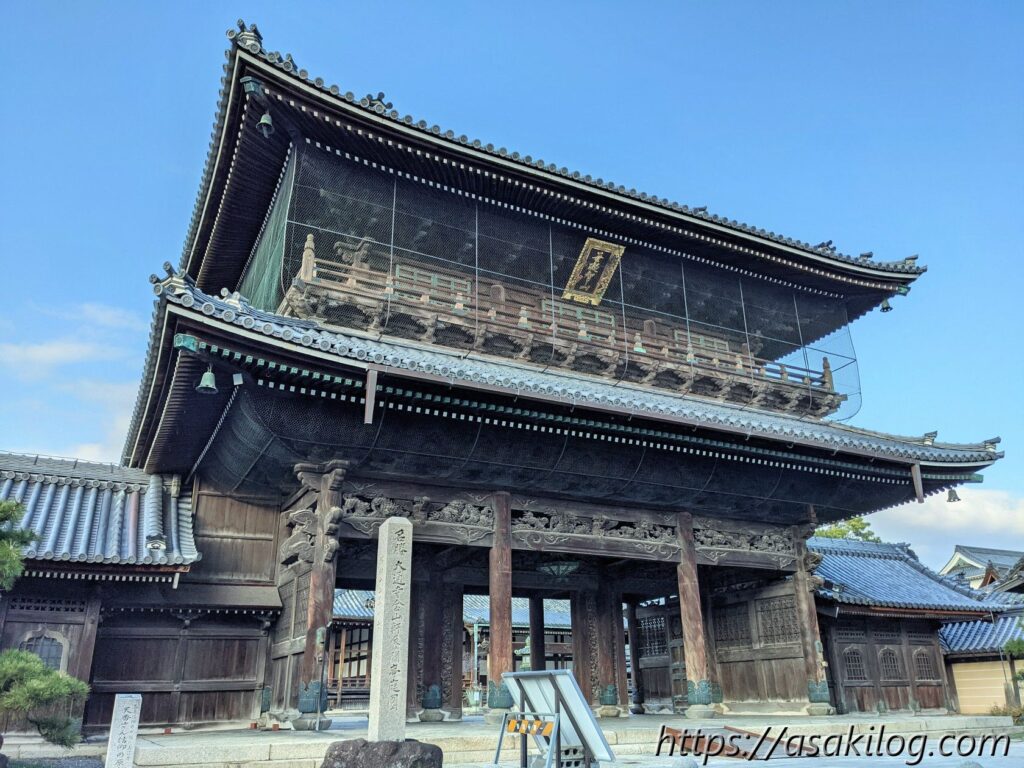 左の写真が、無礙智山大通寺(むげちざんだいつうじ)の山門。こちらのお寺は「長浜御坊」「ごぼうさん」の名で親しまれている真宗大谷派の別院で、本堂と大広間が重要文化財建造物に指定されているそう。今回は残念ながらかなり疲れていたため、お寺の中は散策せず。