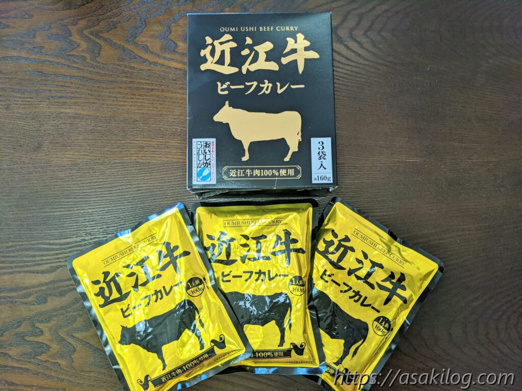こちらの「近江牛ビーフカレー」は、箱を開けるとキラッキラのパッケージにビックリ! 私的には濃厚で辛くてとっても美味でした(子どもにはちょっと辛いかも?娘三分の二くらいで完食できず)。