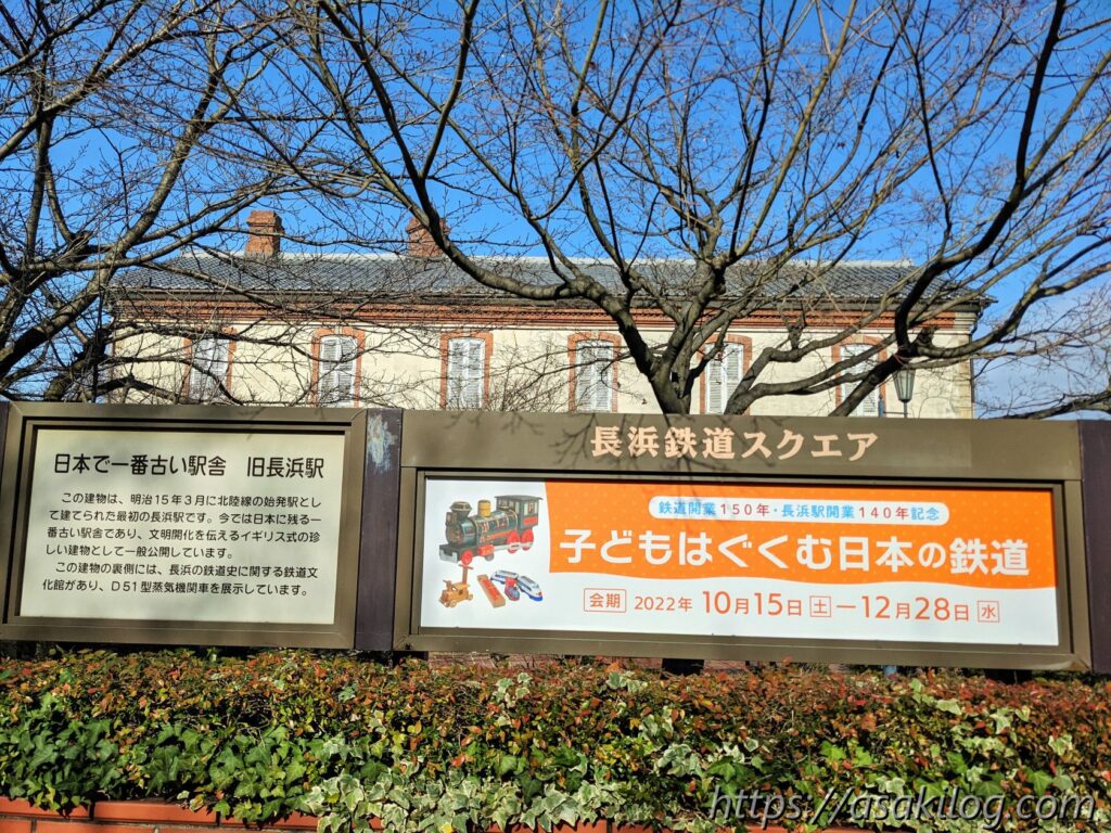 初日のうちに彦根から長浜に移動して「北ビワコホテルグラツィエ」に滞在したため、翌朝はホテルチェックアウトしてから、まずは一番近くにある「長浜鉄道スクエア」へ行ってみました。