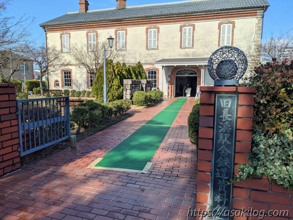豊公園駐車場から徒歩5分ほどで、長浜鉄道スクエアの入口に到着しました。