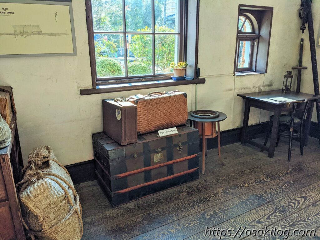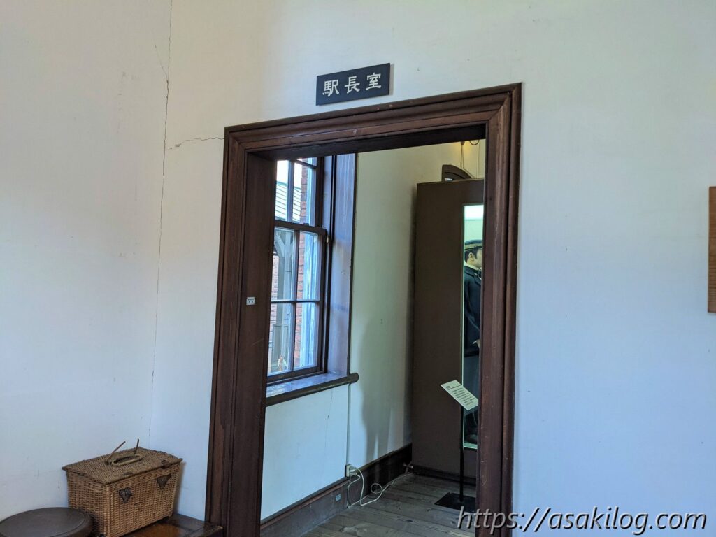 こちらの写真は駅長室の様子。机・備品・駅長の制服などを展示し、当時の様子を再現しています。また駅長室からは休憩室への行き来が可能でした。