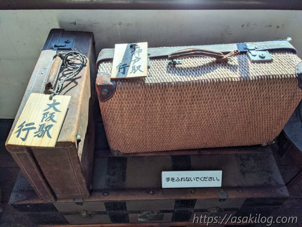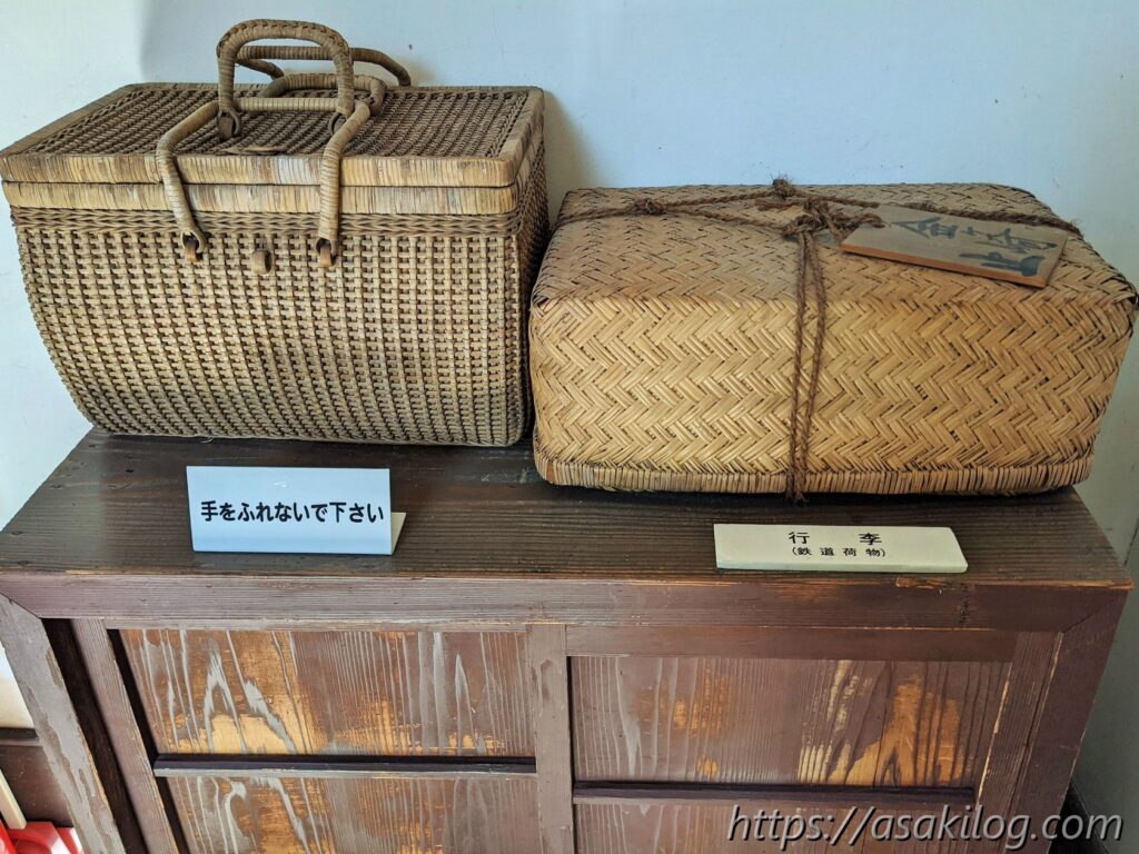 倉庫係室にはいろいろな荷物が置いてあります。行き先の札がついているので、倉庫係がここから鉄道車両まで運んでいたのでしょうか。