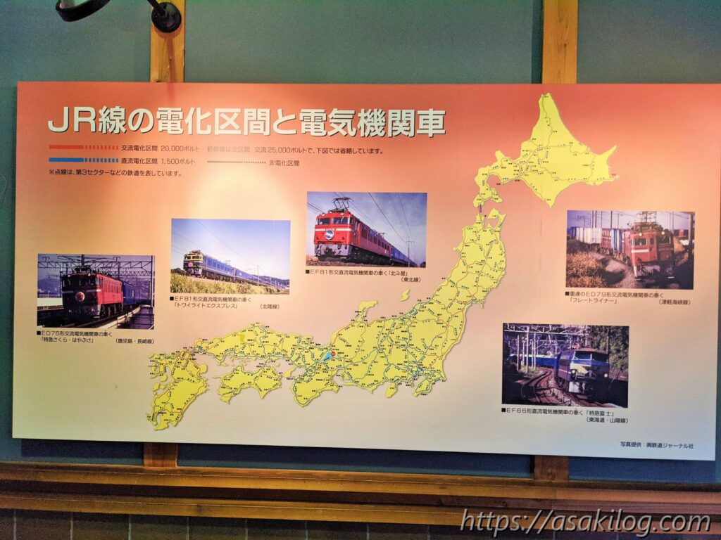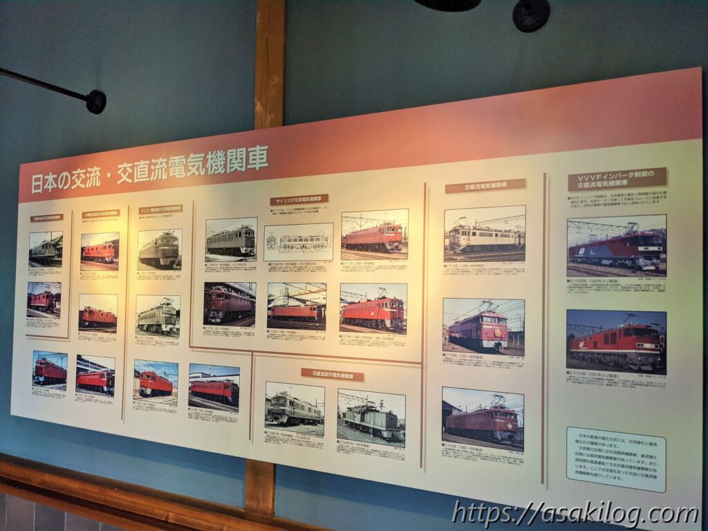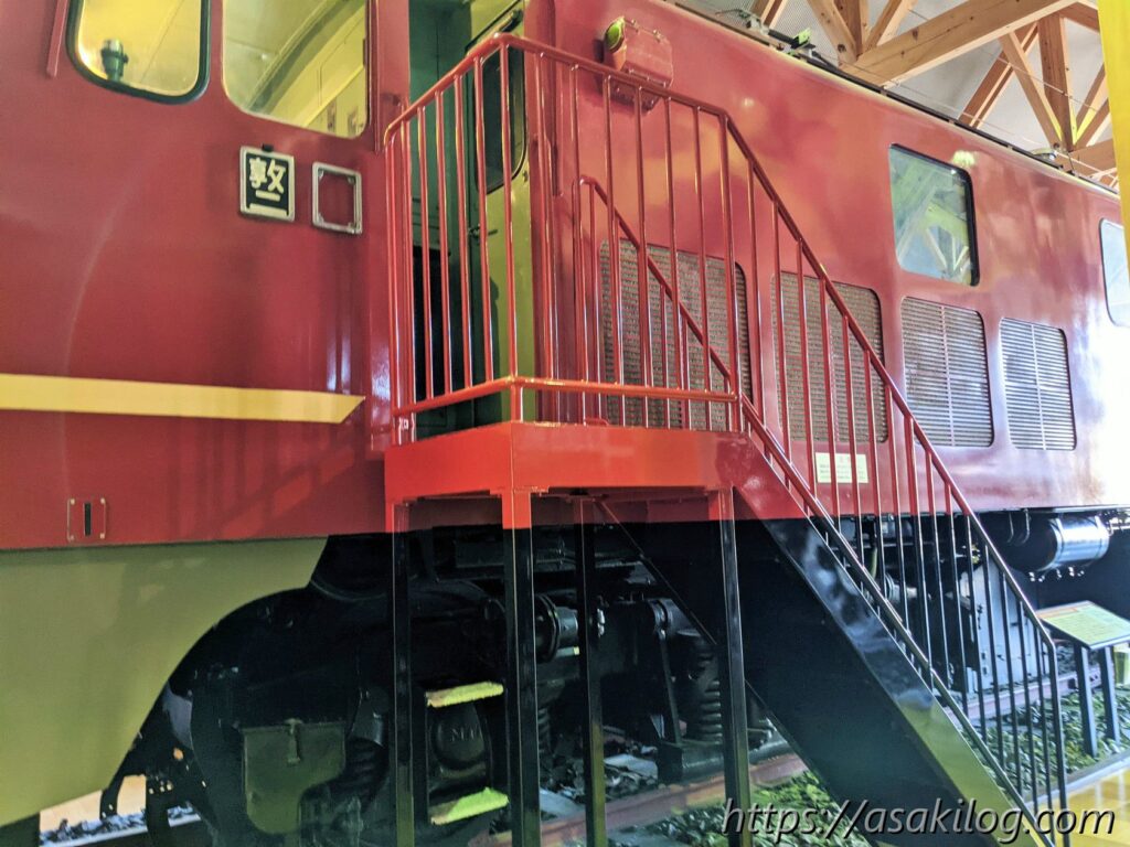 ED70形1号機は、日本初の営業用60ヘルツの交流電気機関車で、交流の電気機関車であることを示す赤色に塗られて19両製造。ここに展示されているのは、1957年(昭和32年)7月に三菱電機(株)で製造、田村~敦賀間の交流電化区間で1975年(昭和50年)4月まで18年間活躍した車両です。走行距離は1,473,000km、なんと地球を約37周したことになるそう!すごい!