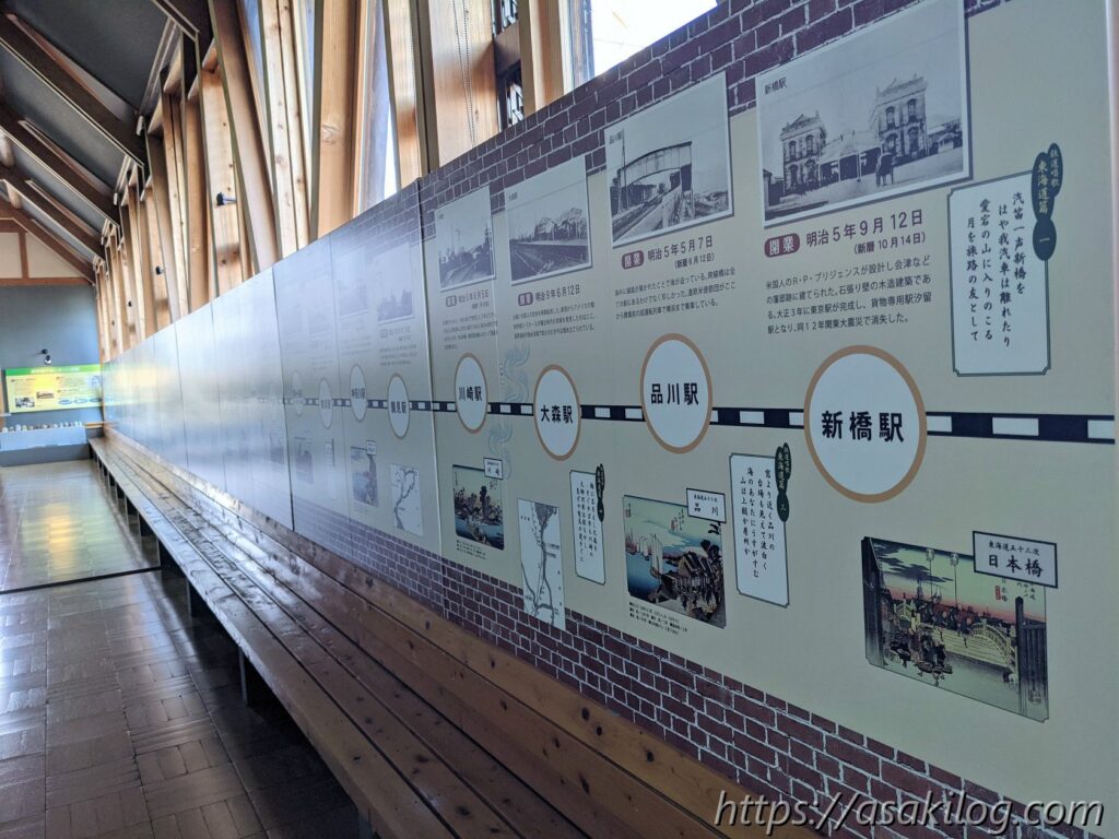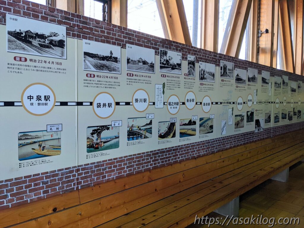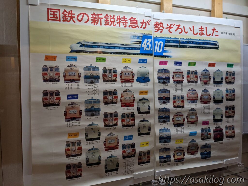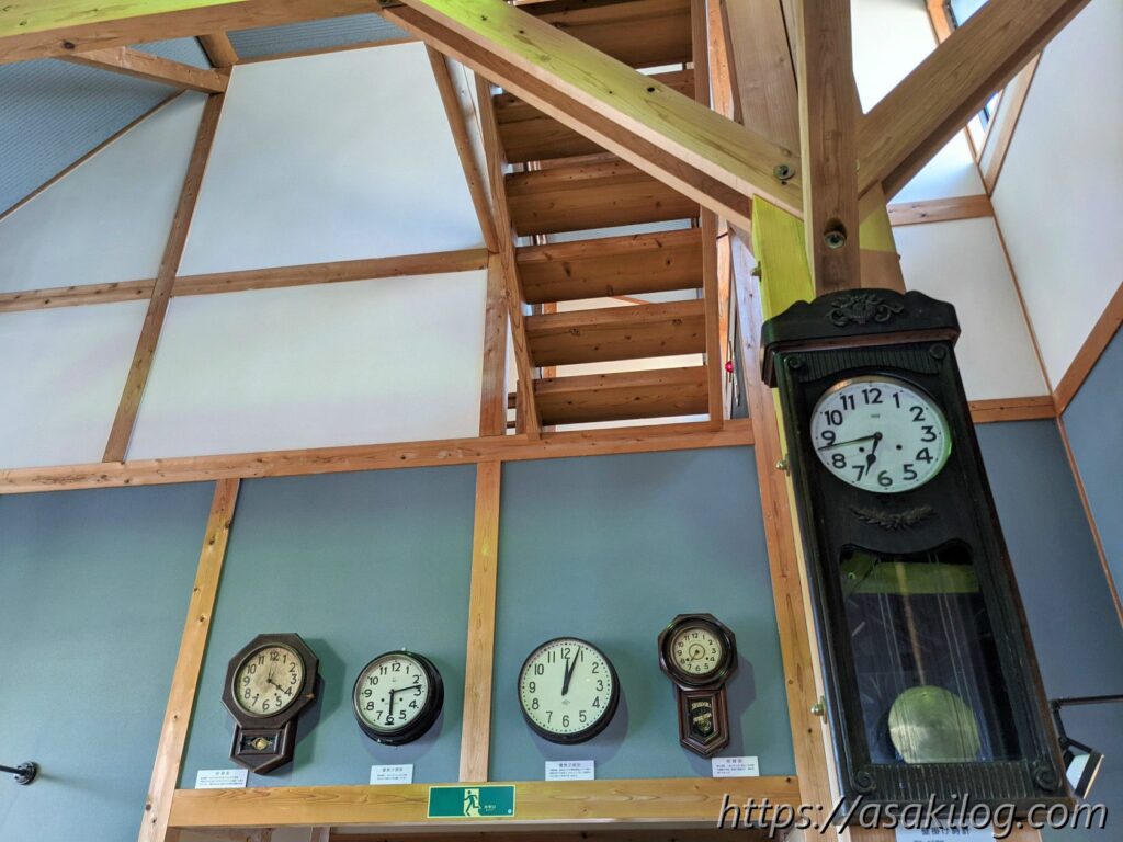 北陸線電化記念館の館内には、当時使われていた壁掛け時計や、東海道本線の各駅紹介などの資料も展示されていました。