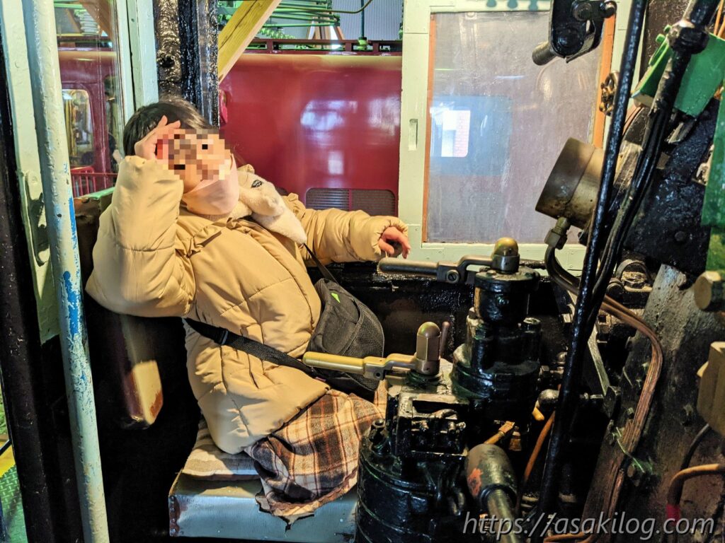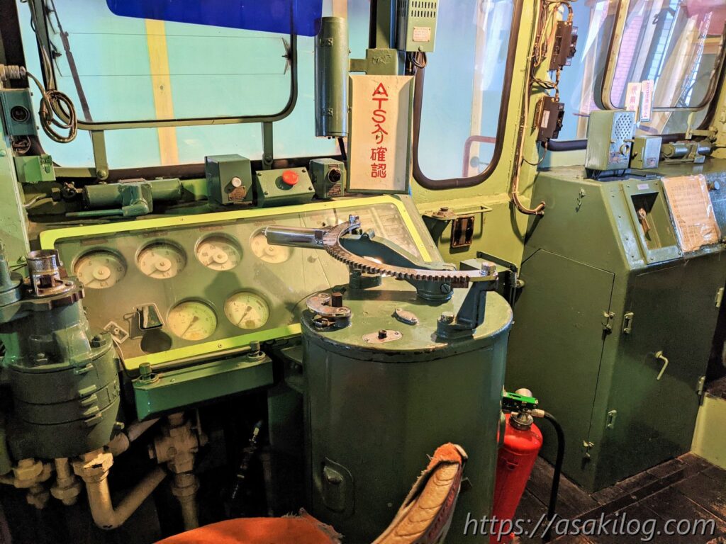 こちらが運転席。たくさんの装置があり、何をどうしたらどうなるのか?機械音痴の私にはよく分かりませんが、鉄道好きの方なら興味津々のハズ!