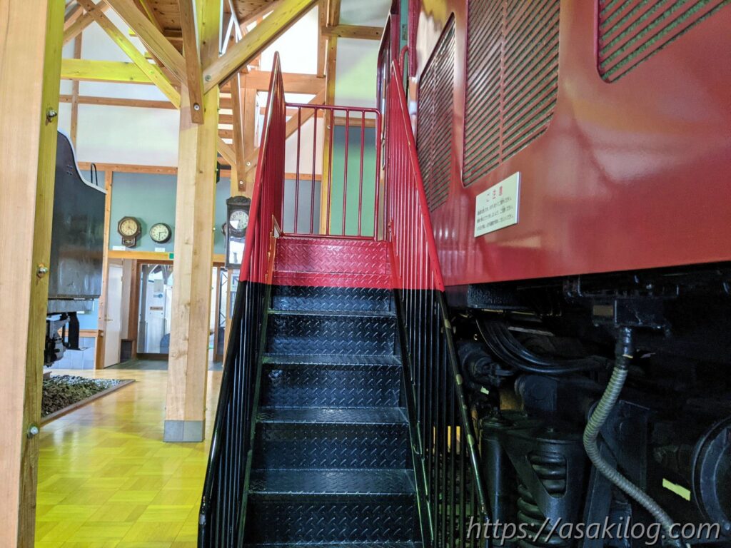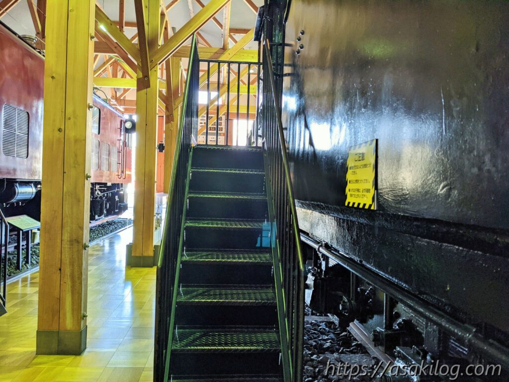こちらの階段を上ると、車両の中の運転席を見学できます。