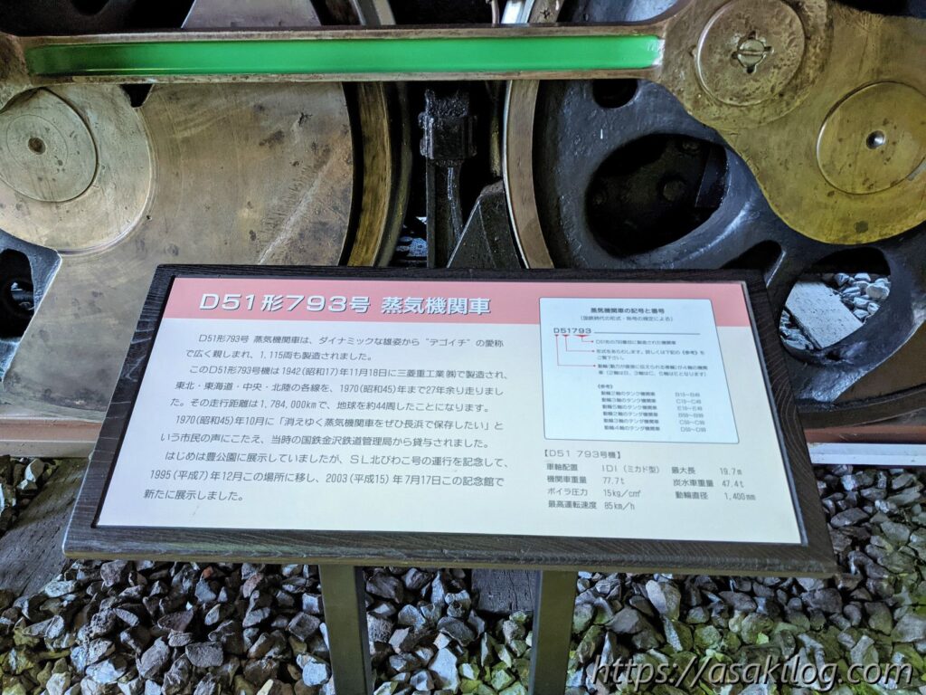 D51形793号機は、そのダイナミックな雄姿から愛称「デゴイチ」で広く親しまれている蒸気機関車。なんと全1,115両も製造されたそう。ここに展示されているのは、1942年(昭和17年)11月18日に三菱重工業(株)で製造、1970年(昭和45年)年まで27年活躍した車両です。走行距離は1,784,000km、なんと地球を44周もまわったとか! 真っ黒な煙をあげて力強く走るデゴイチは、カッコいいSL列車のイメージがありますよね。