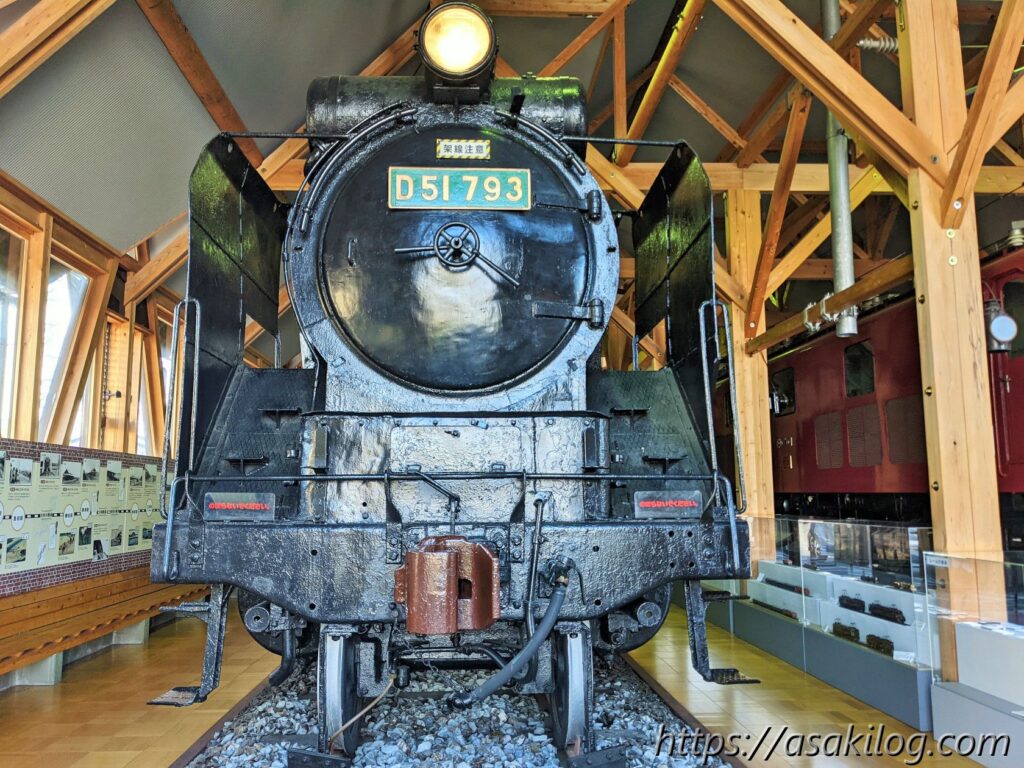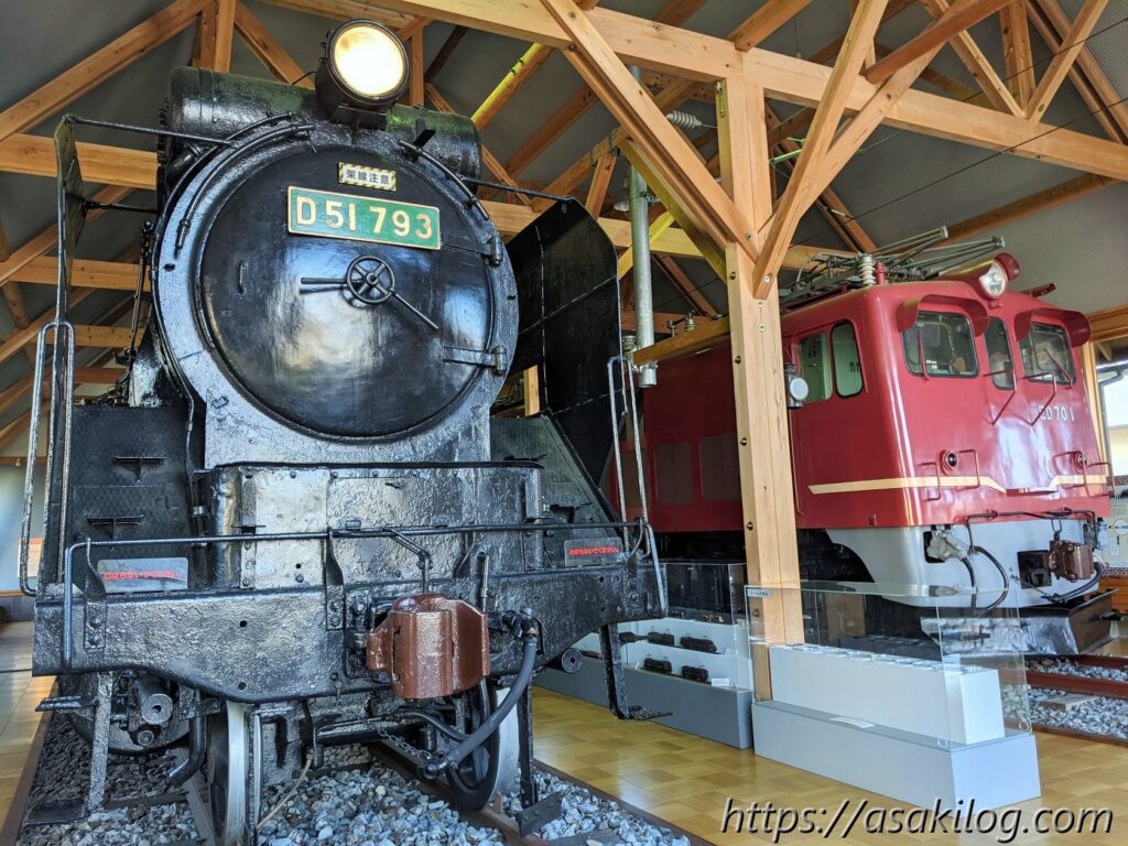 北陸線電化記念館に入り、ED70形1号機の奥に展示されているのが「蒸気機関車D51形793号機(SL列車)」です。