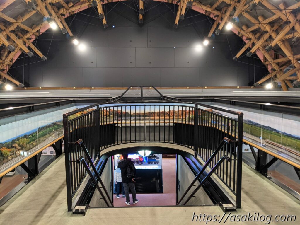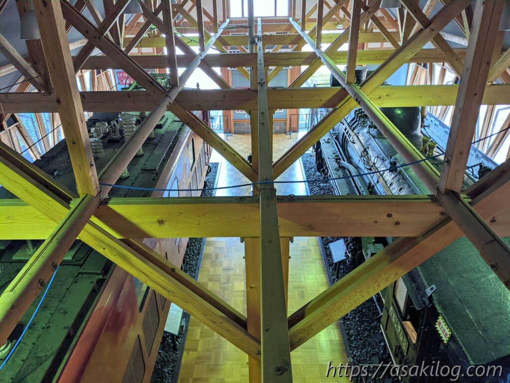 また館内に展示の2車両を上から見下ろすこともできます。普段の生活では鉄道列車の上部ってあまり見えないので、じっくりと観察してしまいました。
