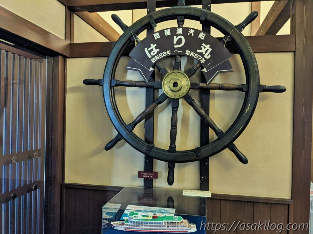 長浜鉄道文化館の入口がこちら。入ってすぐ左側には、琵琶湖汽船はり丸の大きな舵を展示していました。いざ中へ!
