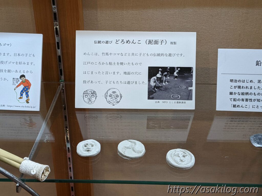国鉄の新鋭特急のポスターも展示。こうやってみるとなんとなく見覚えのあるものも?! 伝統的な子どもの遊び・どろめんこ(泥面子)もありました。