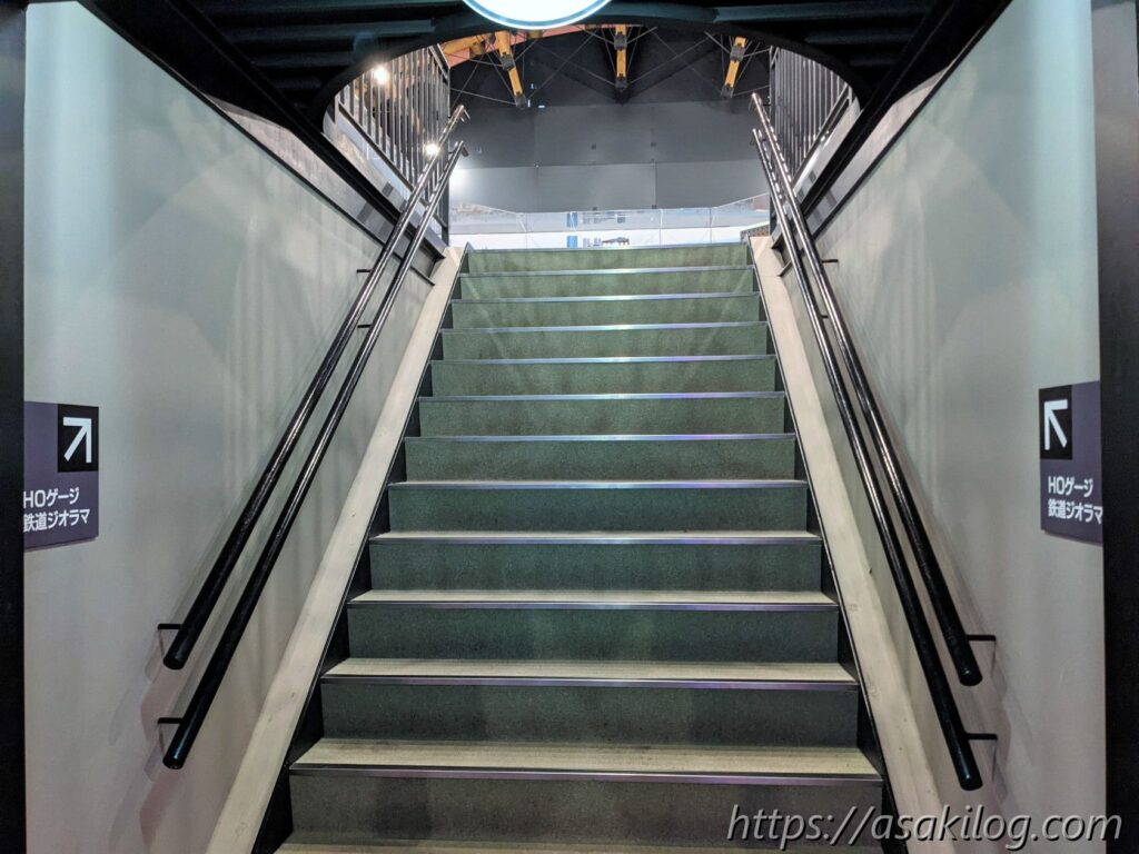 奥のコーナーにある階段を上ると、2階の「HOゲージ・鉄道ジオラマ」で、今の長浜駅を再現した鉄道模型があります。