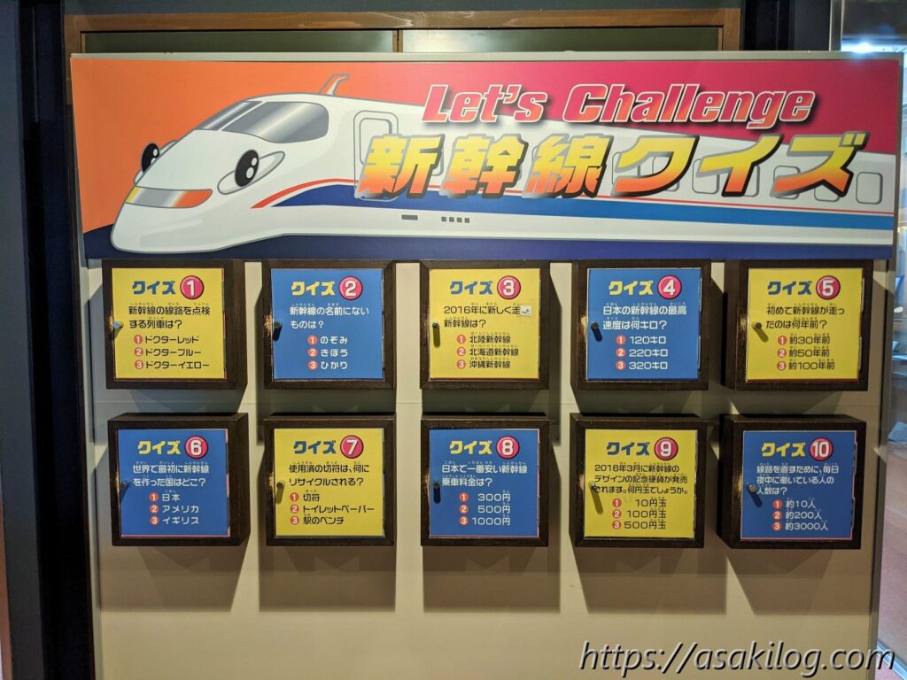 右の写真は、新幹線クイズ! 我が家の子どもは女の子なのでさっぱりでしたが、鉄道好きのお子さんなら盛り上がりそうです。