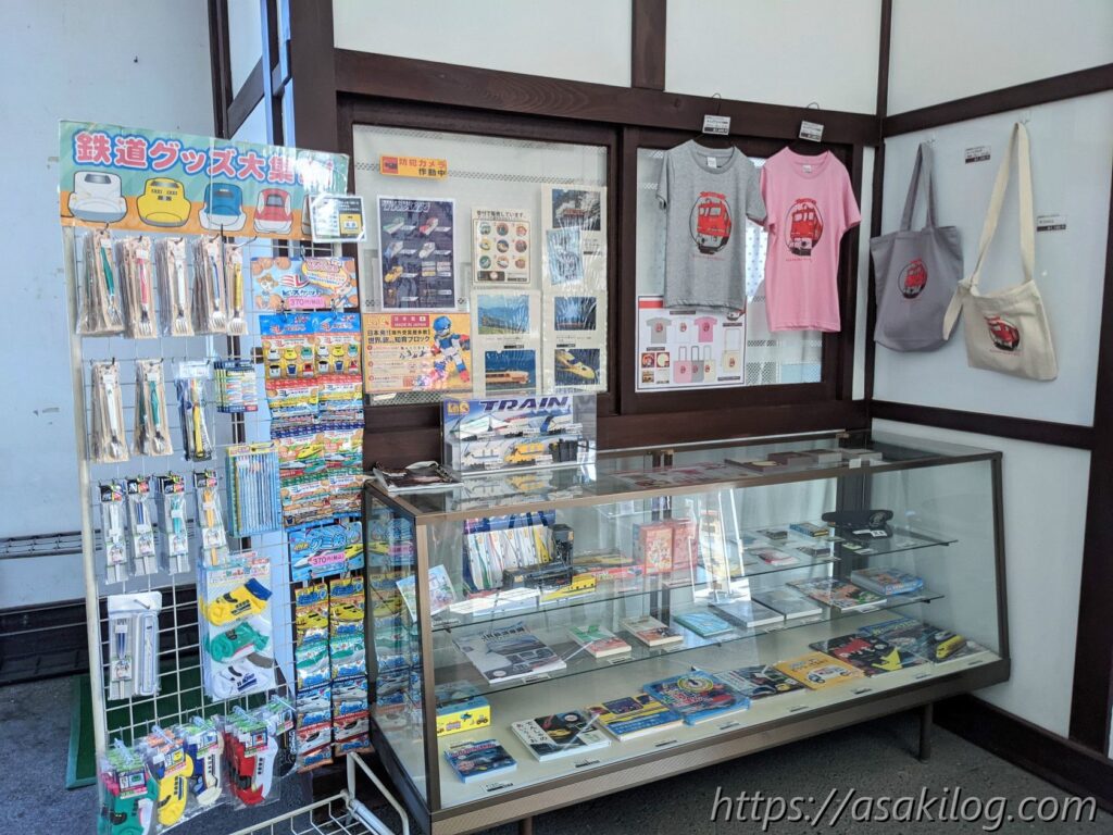 建物に入ると右側に受付があり、ここで入館券を購入します(左の写真)。受付の奥にはお土産コーナーがあり、鉄道好きの小さなお子さまが喜びそうな鉄道グッズが並んでいましたよ。