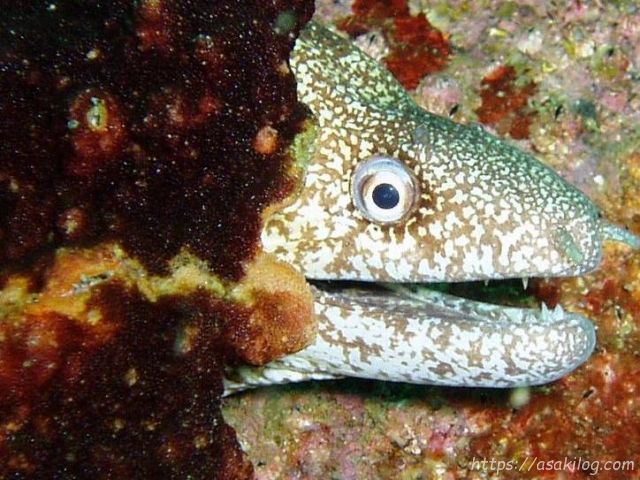 ウツボは、一般的に凶暴な性格だと言われていますが、今回白浜で見つけたウツボは、ずっと岩の間に隠れてぼーっとしてました。ちょっとシャイな性格だった? 写真の被写体としては嬉しいのですが(笑)
