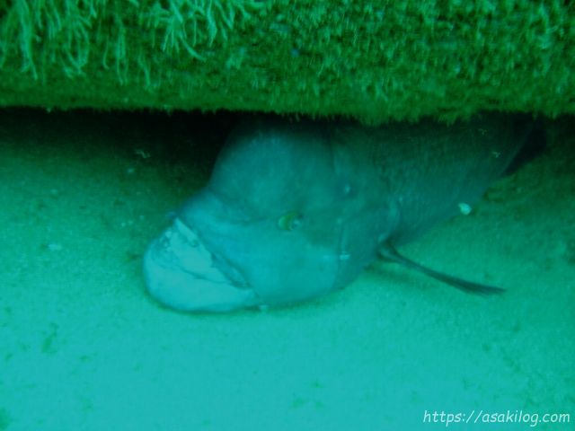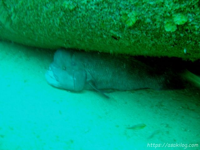 マメアジ、カンパチ、ネンブツダイ(他のもいたかも?)が、いっぱい群れてました。これだけ群れていると、本当に「お邪魔します」といった気分になります、ね。
