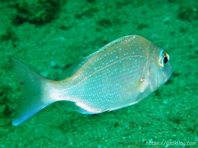 正直、真鯛の子供が、こんなに綺麗な魚だとは思いもせず・・・。水色の斑点がキラキラしていて、南国の魚みたい! かなり驚きです。うちの水槽で飼いたいくらいだ~(淡水だから無理だけど。^^;)