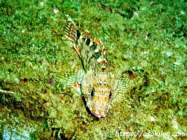 こちらは美味しいお魚!カサゴです。白浜にいたカサゴも、基本的にはじーっとしててくれました。それにしても美味しそうだなぁ・・・と思いながら撮影しました(笑)