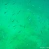 こちらは沈船スポットで撮ったマメアジ、カンパチ、ネンブツダイの群れの写真です。