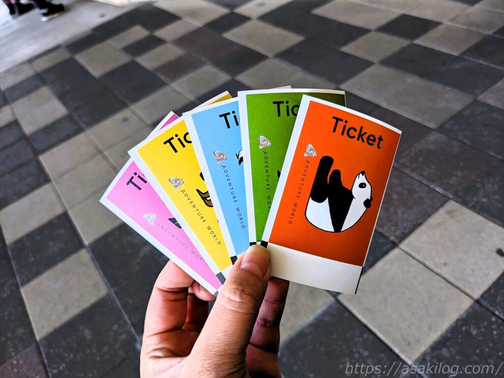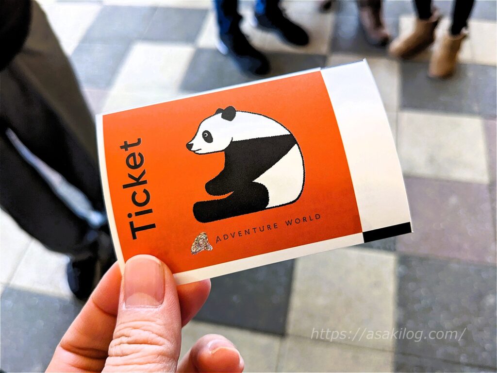まずはチケット販売窓口で、人数分のチケットを購入。チケットには動物の絵が描いてあって可愛い。私はパンダのチケット!