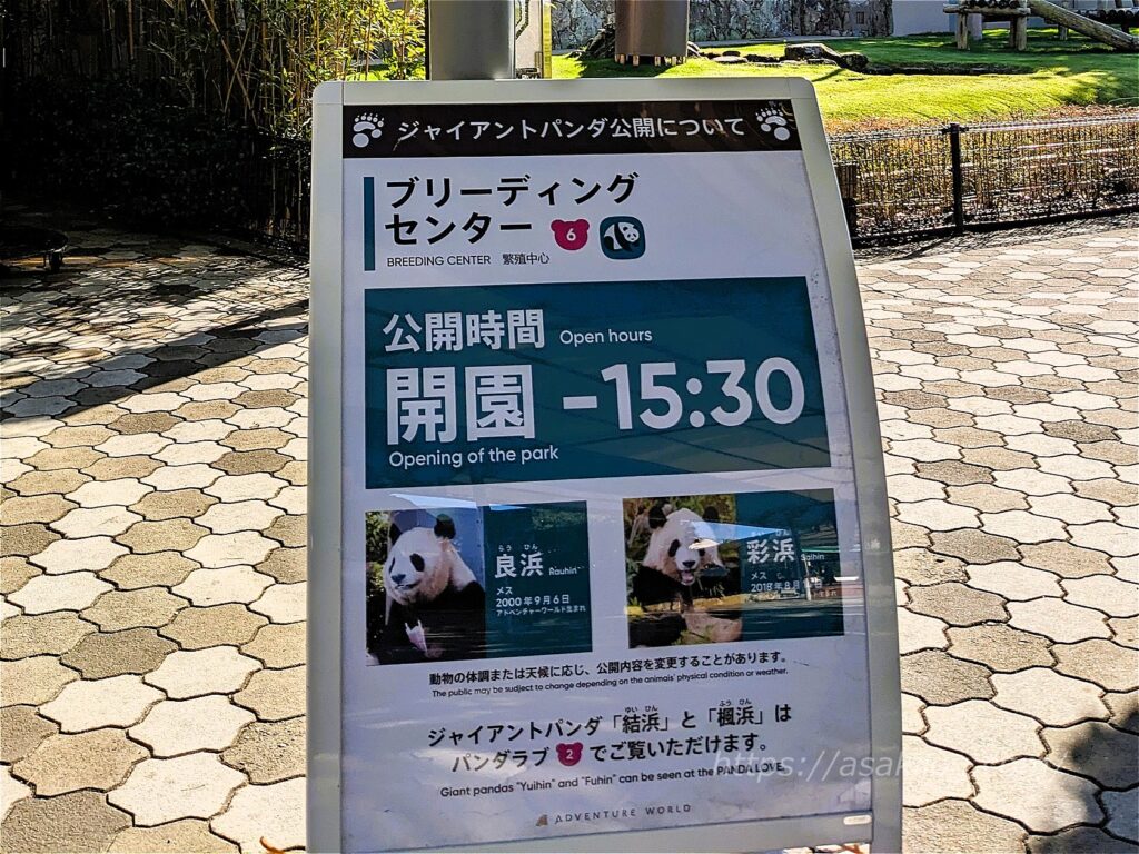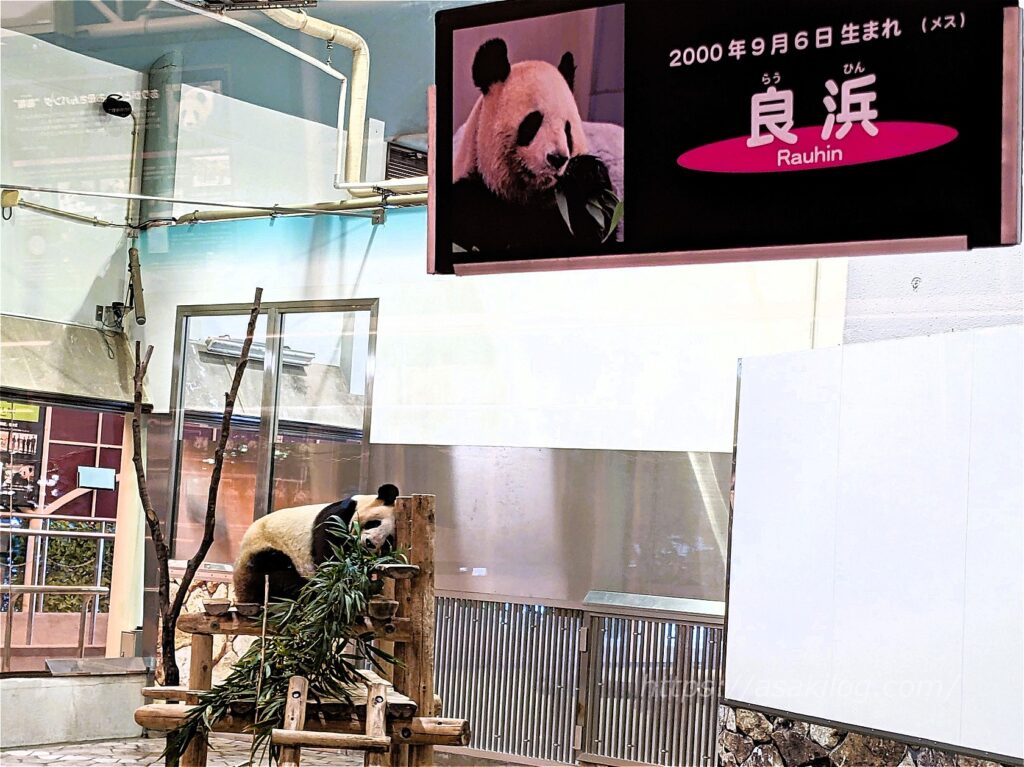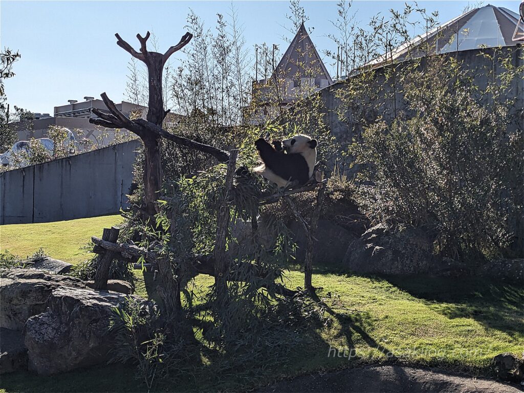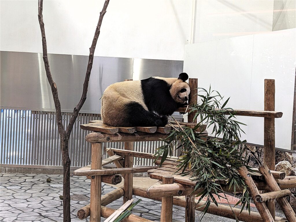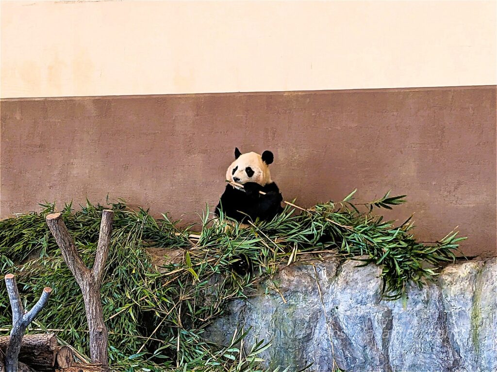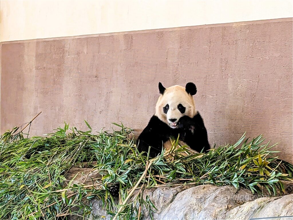 そしてパンダに出会えるもう1か所「ブリーディングセンター」には、園内散策途中の14時頃向かいました。ここはジャイアントパンダの繁殖研究施設で、「良浜」「彩浜」が暮らしています。