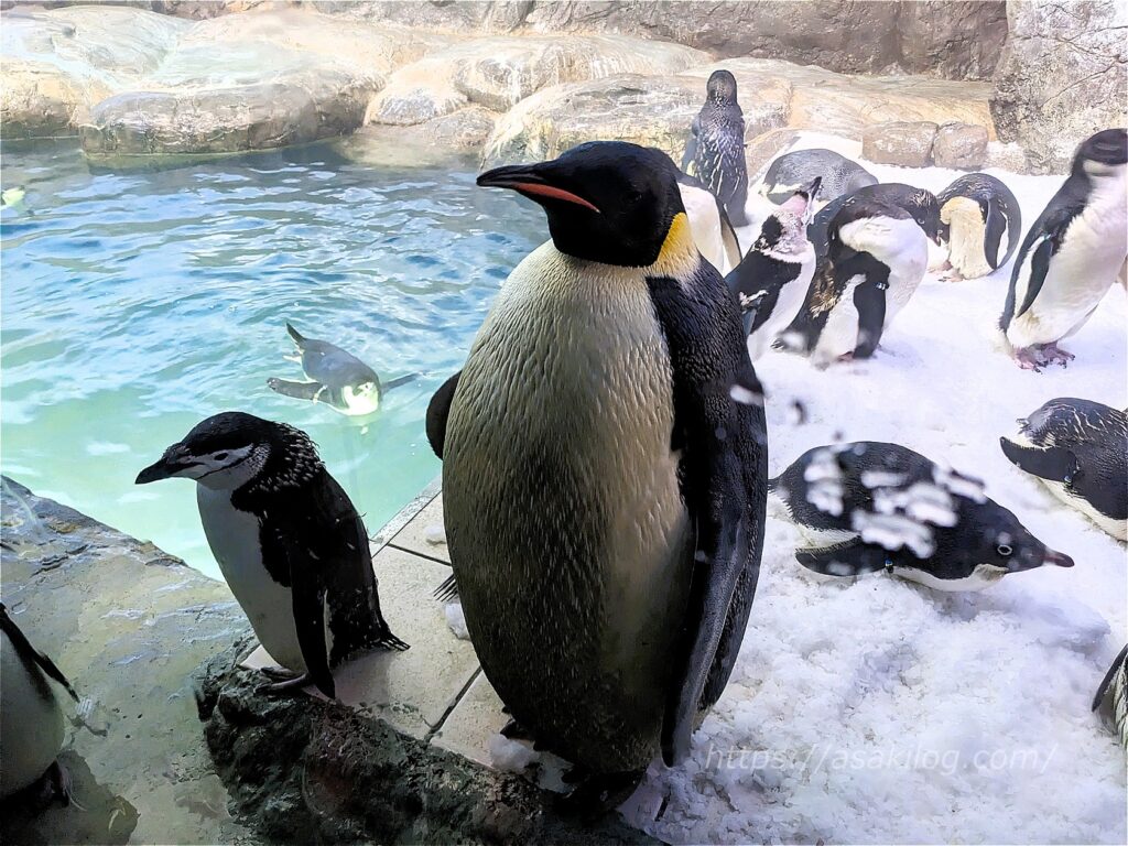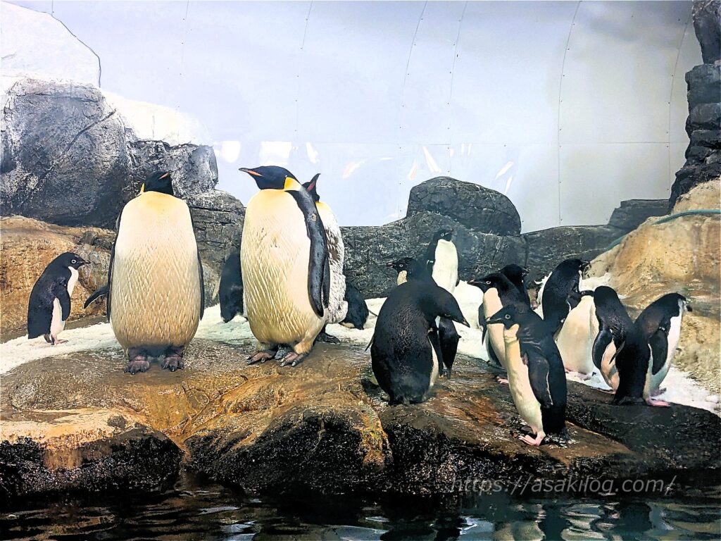 目の周りを白い模様で囲む「アデリーペンギン」や、東部の黄色い飾り羽や嘴が特徴的な「キタイワトビペンギン」、ペンギン類で最も体が大きい「エンペラーペンギン(別名:皇帝ペンギン)」、エンペラーペンギンに次いで大きな「キングペンギン」など、種類が豊富で見応えがありました。