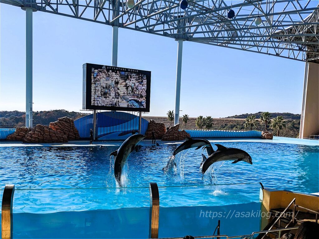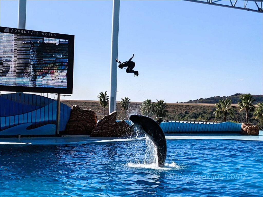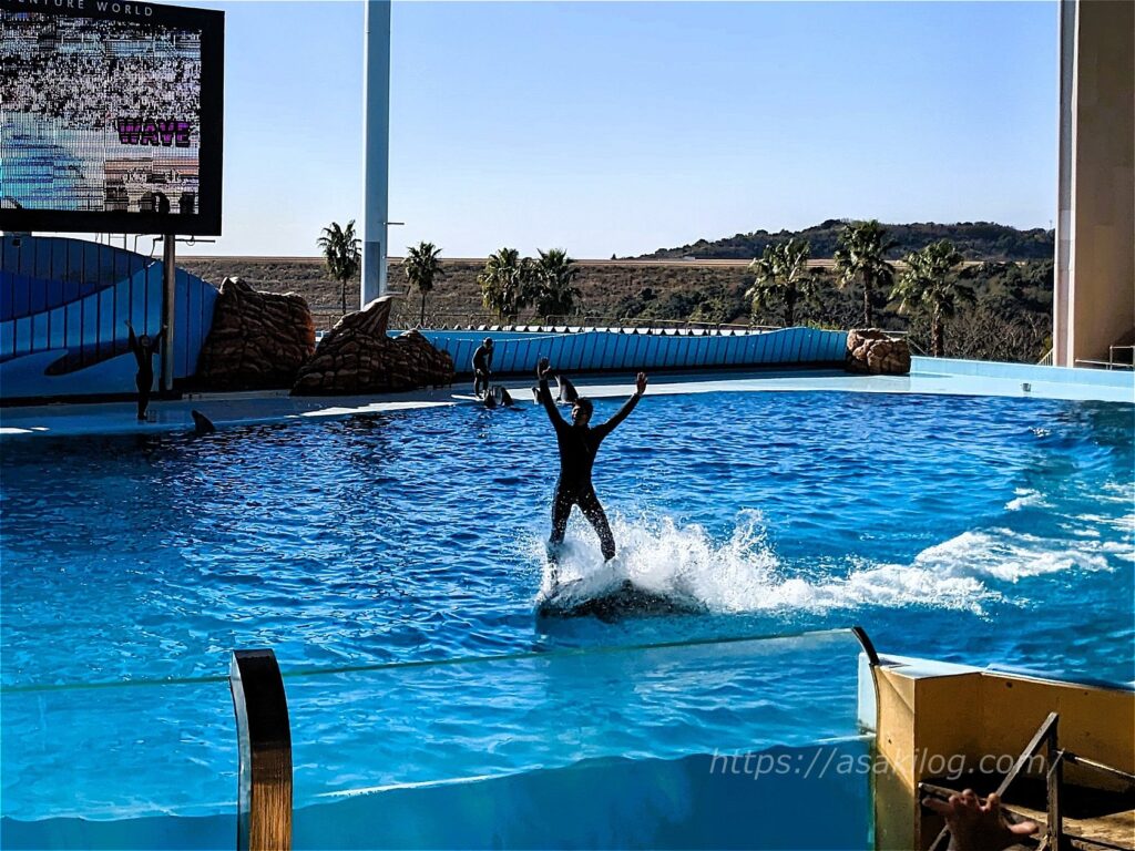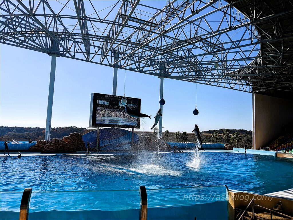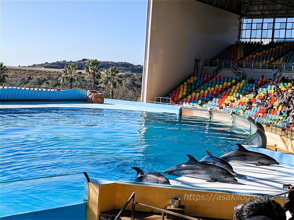 息の合ったイルカのパフォーマンスは、見応え抜群! 動画も少し撮影しています。