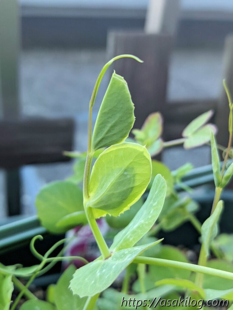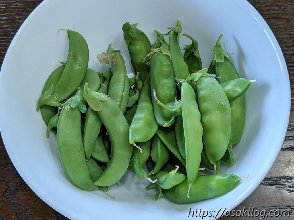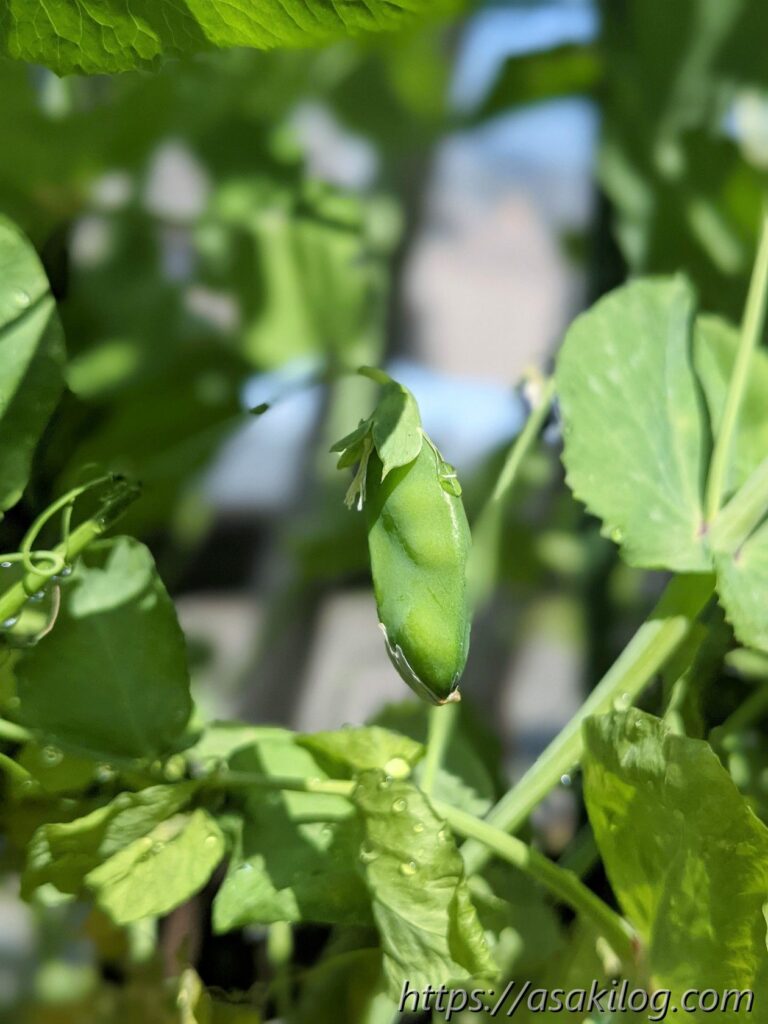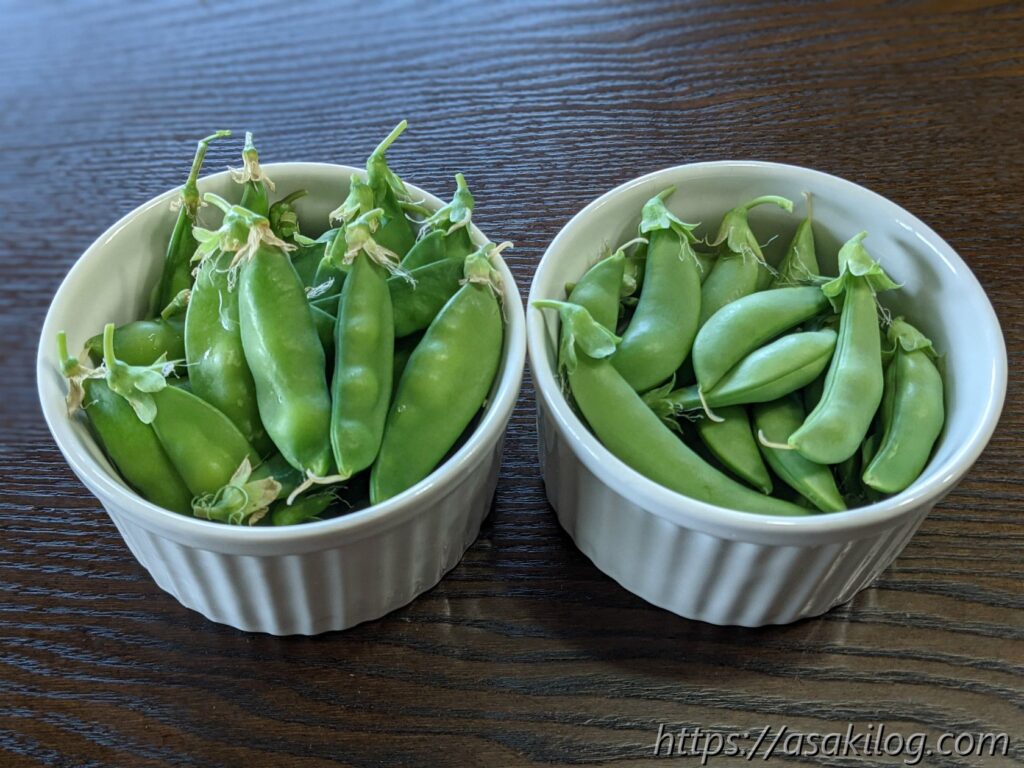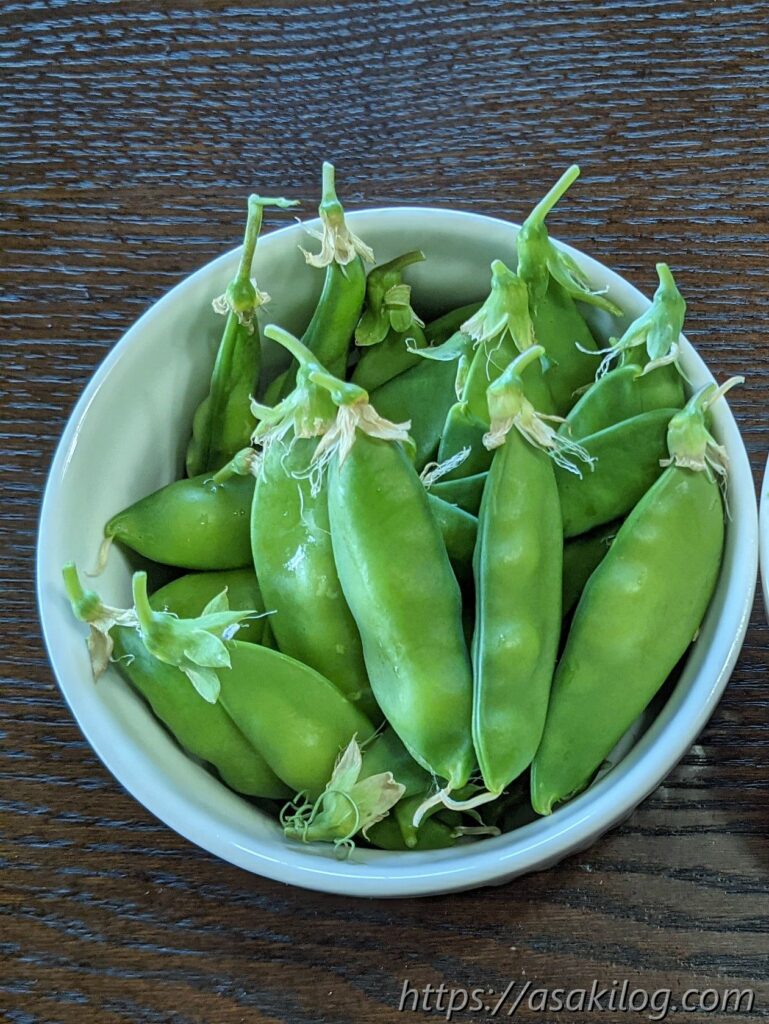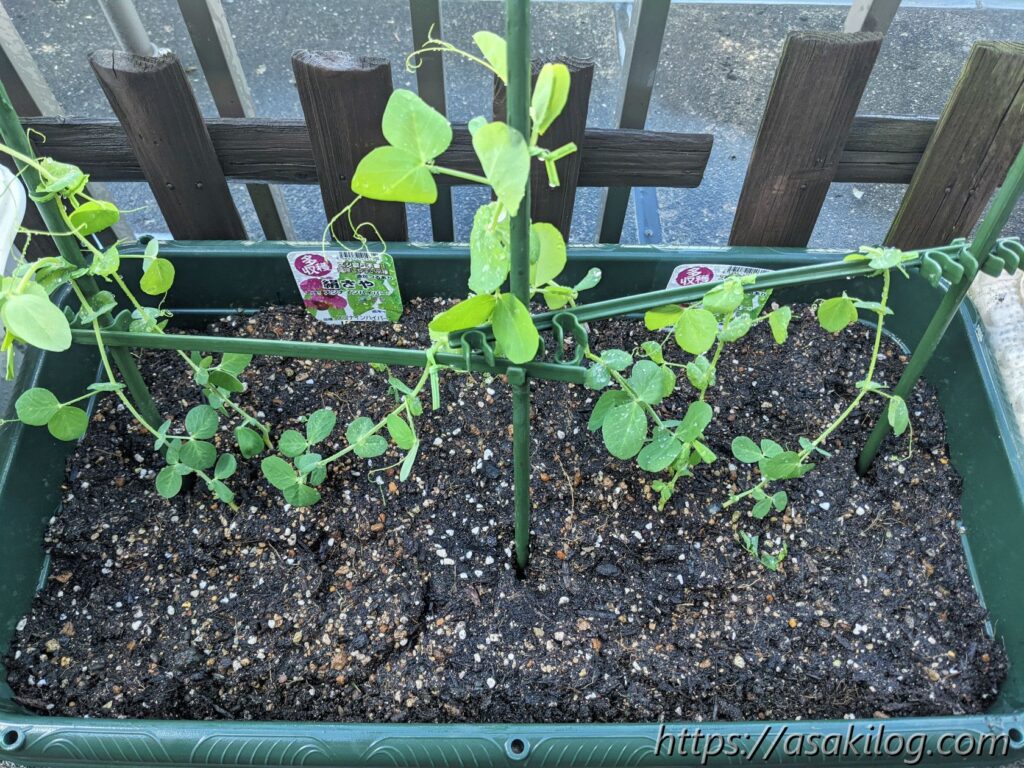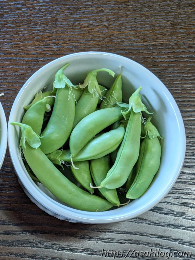 4/9、ようやくスナップエンドウの赤ちゃんができて、4/20に初収穫。例年どおり美味しかった~。