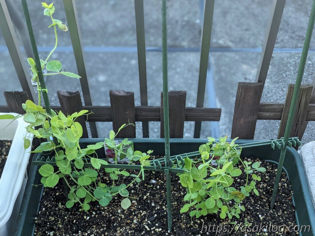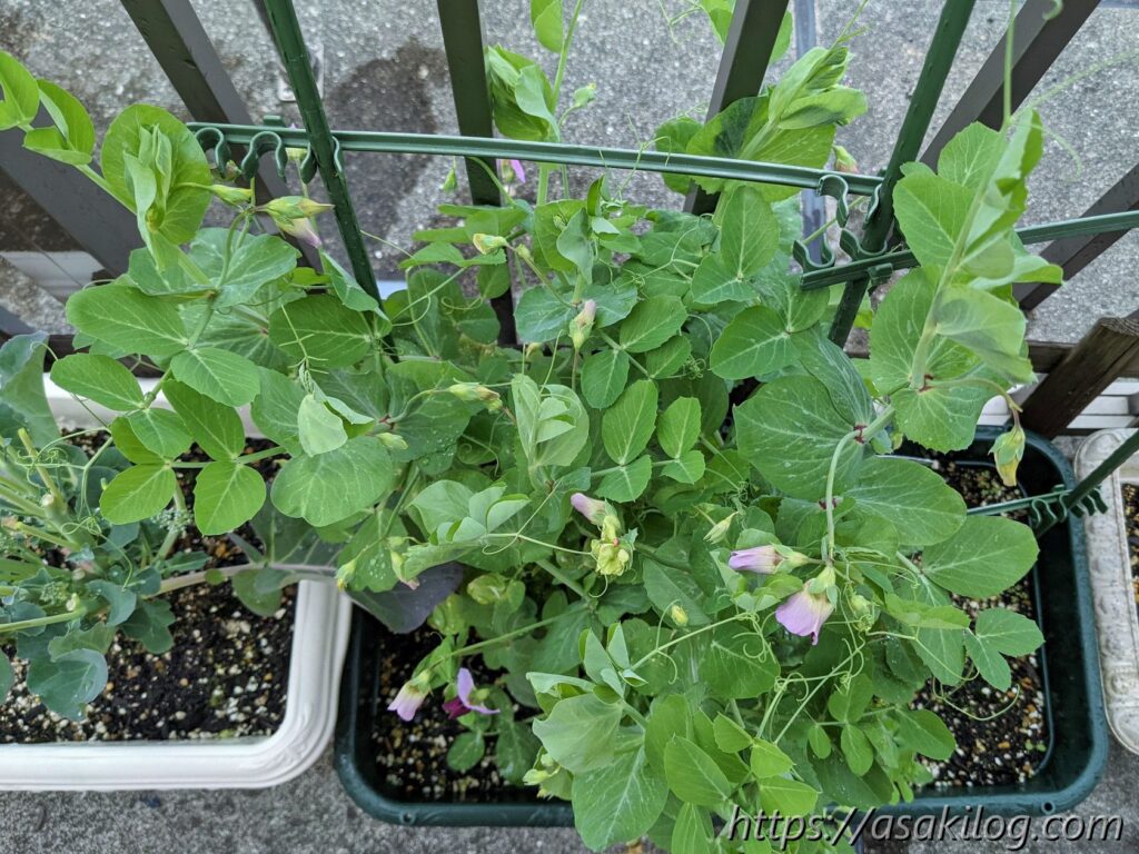 その後GW前まで収穫を楽しみました。↑写真の右側半分が絹さやです(左側半分はスナップエンドウ)