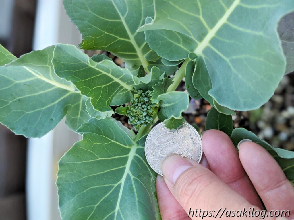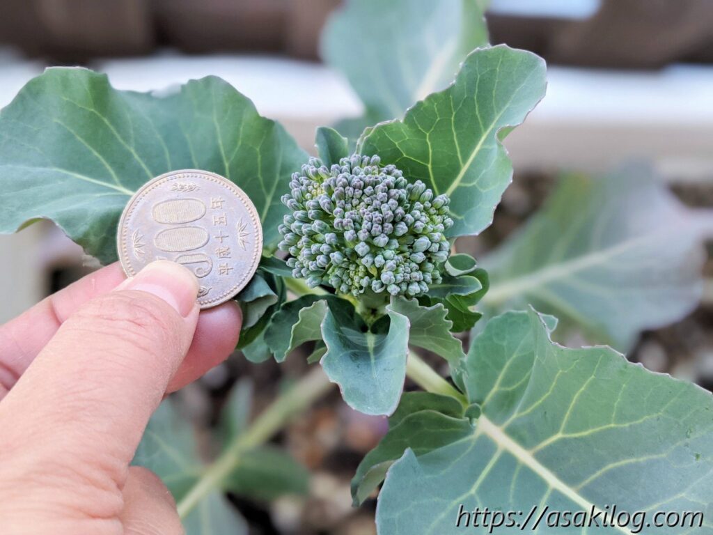 1/12、ようやく頂花蕾が500円玉サイズまで育ったので摘芯。普通に茹でて食べました。