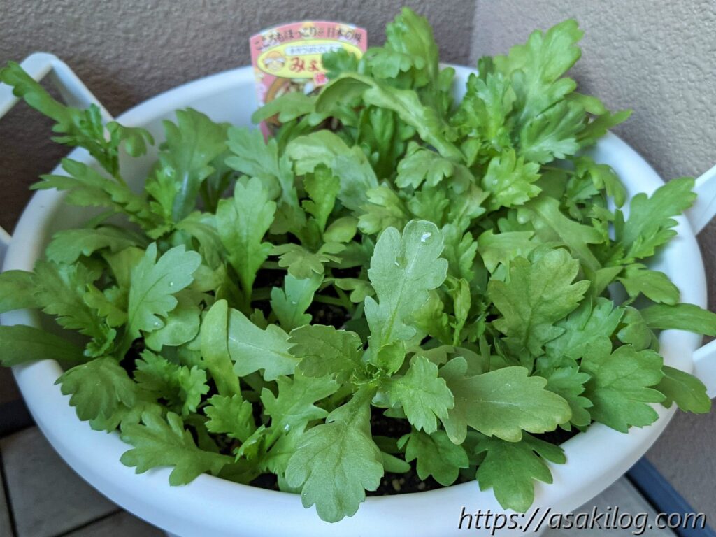 今シーズン初めて春菊を育てましたが、とっても簡単に育てることができ、ちょっとだけ鍋に入れたいなーという時にささっと使えて便利でした。種もたくさん残っているので、来シーズンも育てたいと思います。