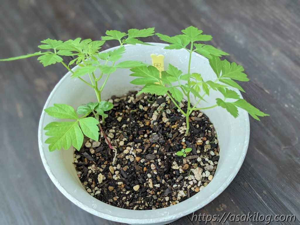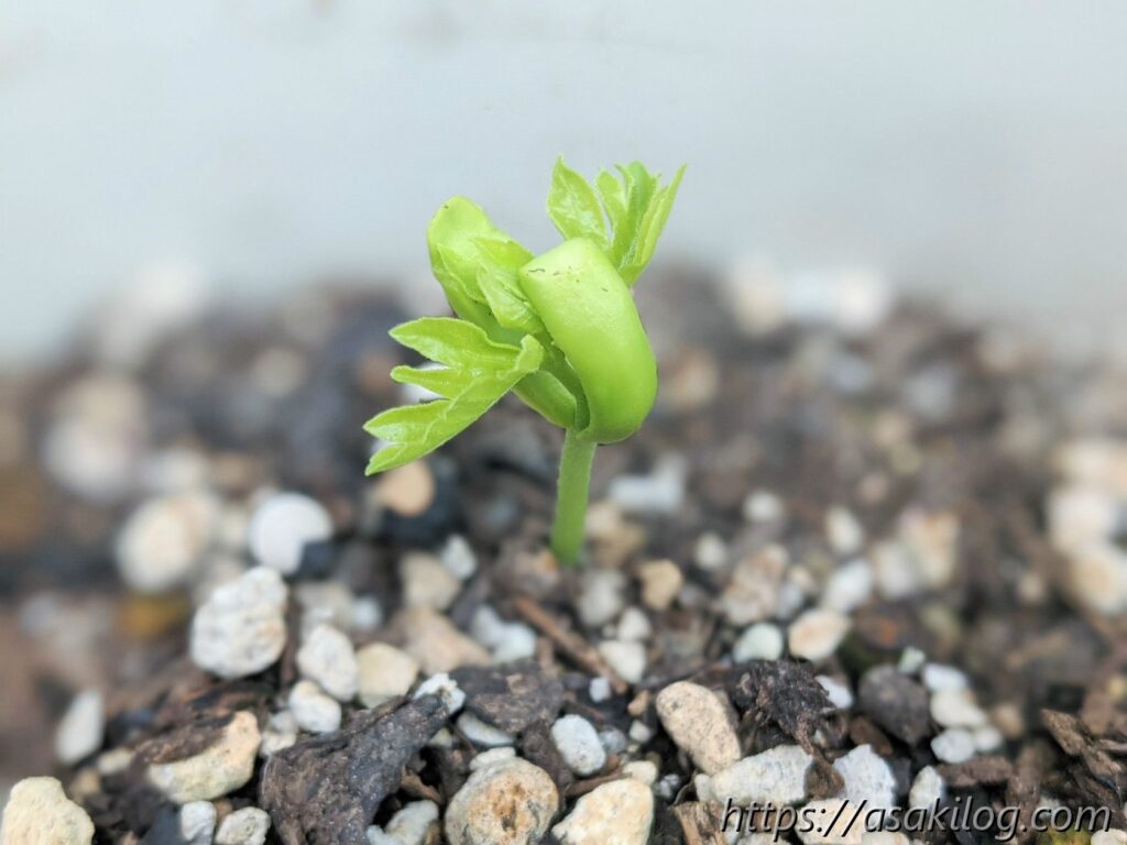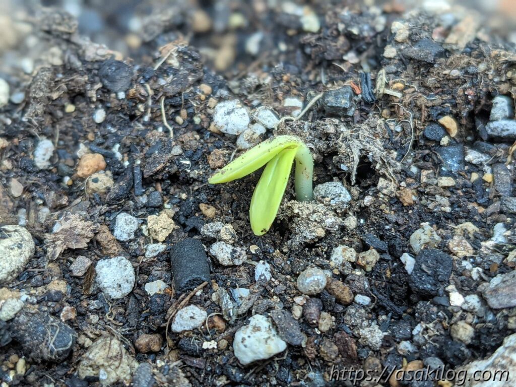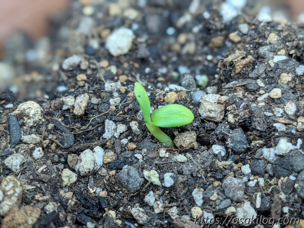 5月8日に種を蒔き、約1か月後の6月12日にようやく発芽。すっかり存在を忘れてました。