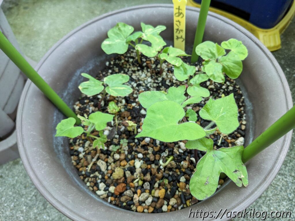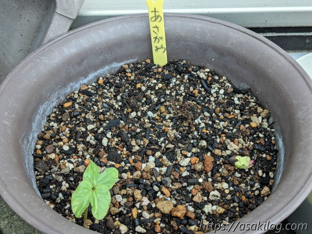 5月8日に朝顔の種を蒔いたところ、5月18日に発芽。端っこから発芽してるの何故?