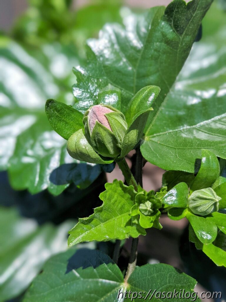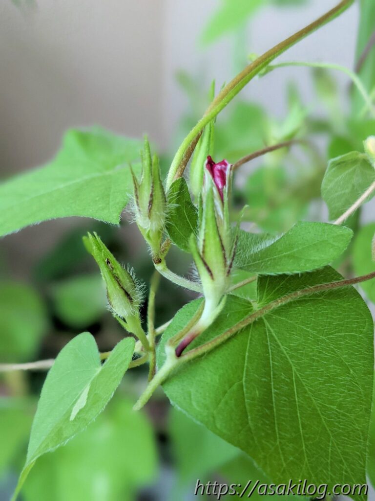 この時点で、今すぐにでも咲きそうな蕾を発見!翌日には蕾が開き始め、ピンク色のお花が可愛い。