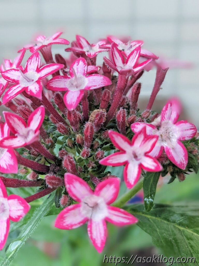 6月11日、ペンタス(ピンク・赤)の蕾がほとんど開き、星形の可愛いお花がたくさん咲いています。