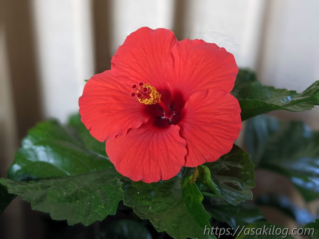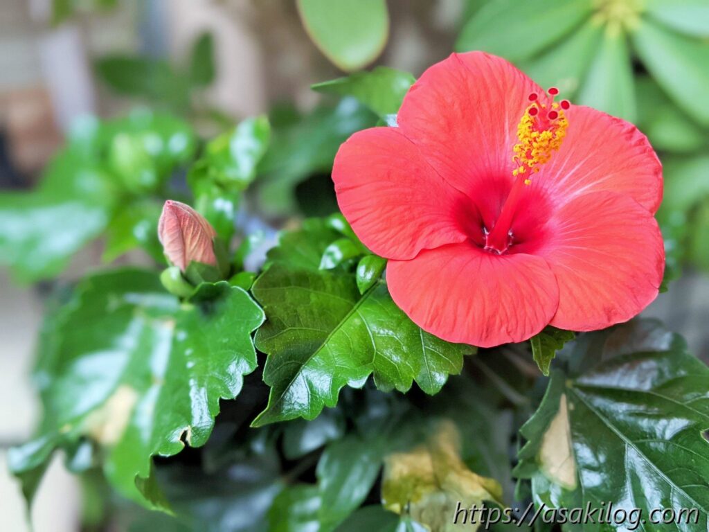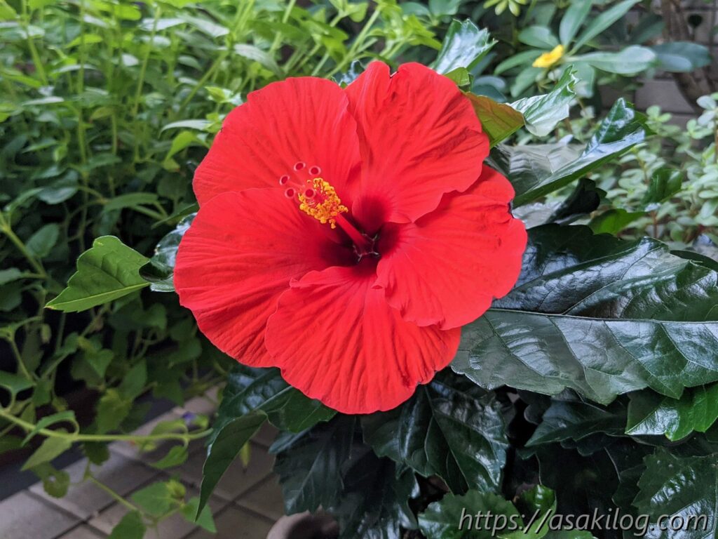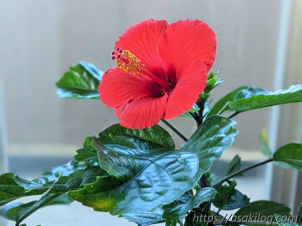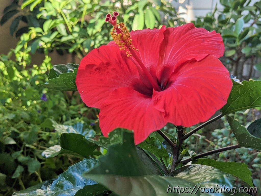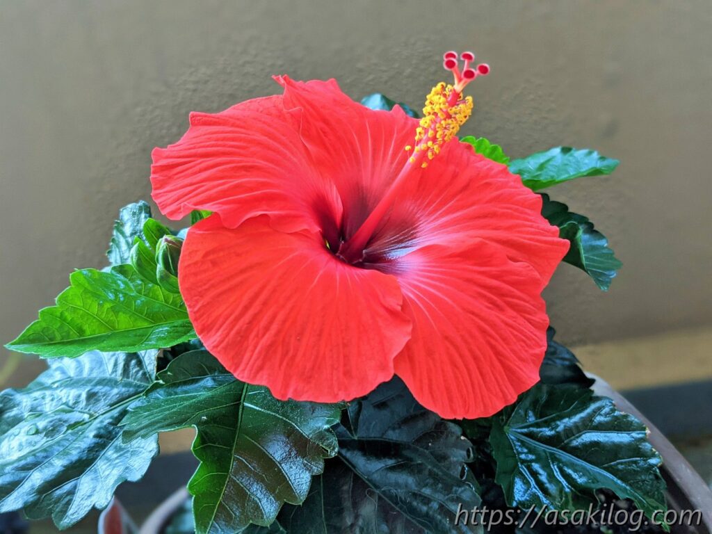 6月5日、ハイビスカスの花が咲きました!真っ赤なお花が可愛い。まさに夏って感じです。