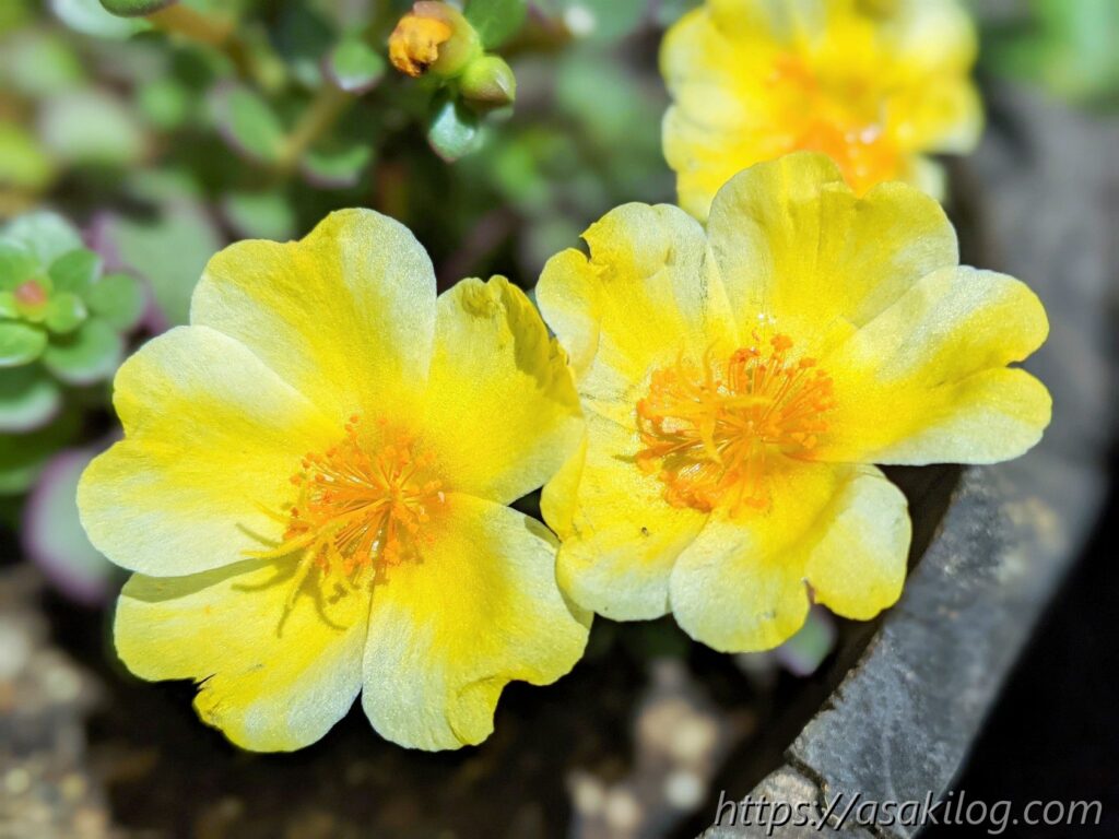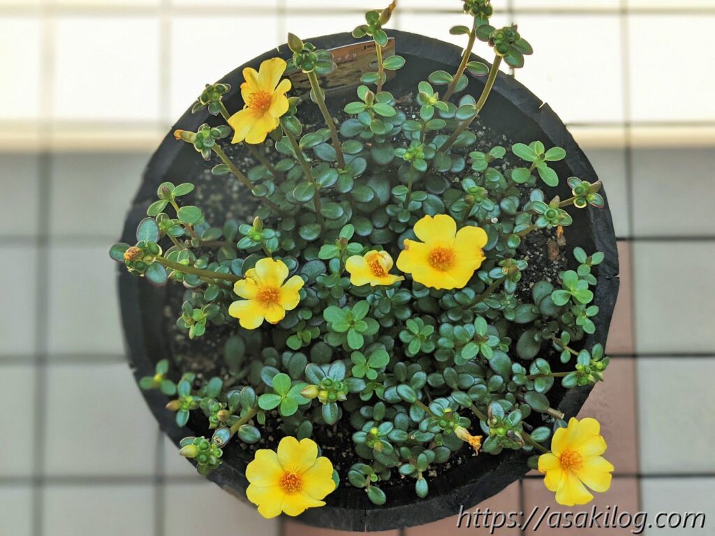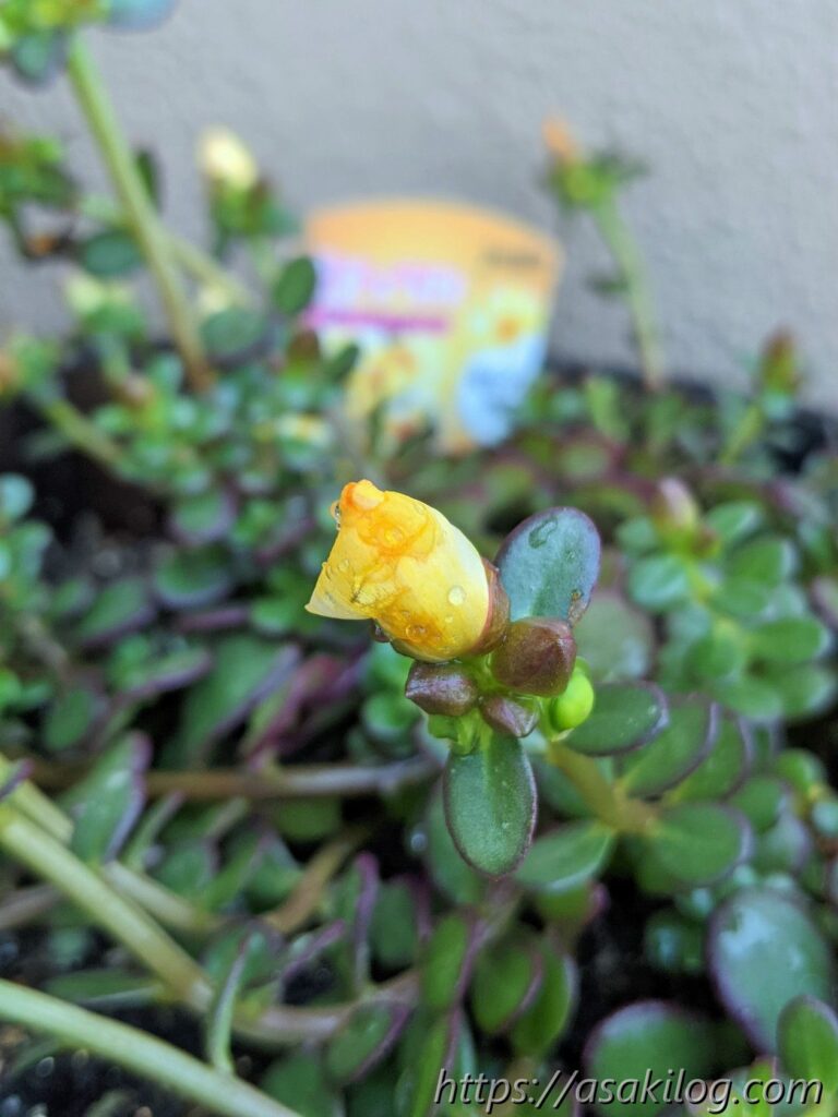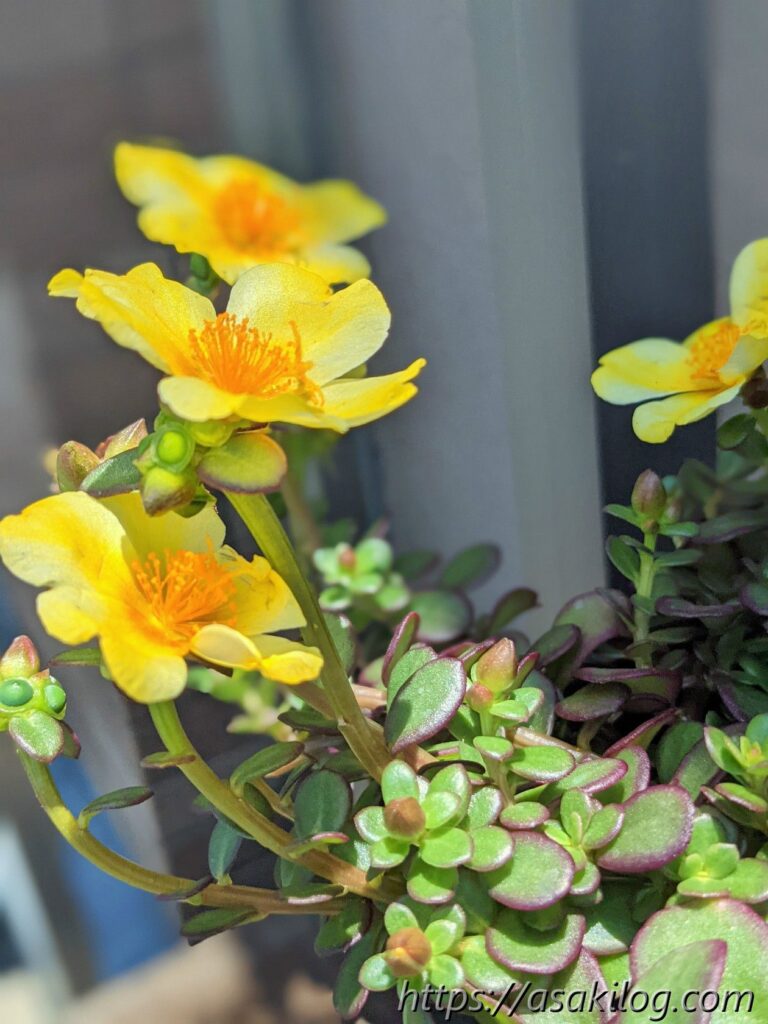 夏チュラカは、黄色の花はもちろんですが、茎の多肉っぽさが可愛い。