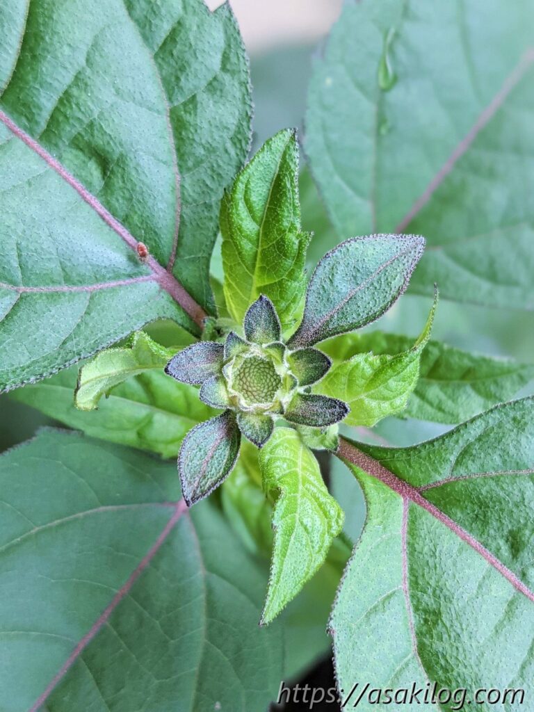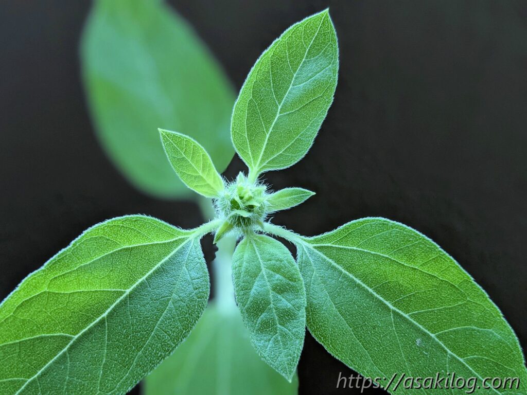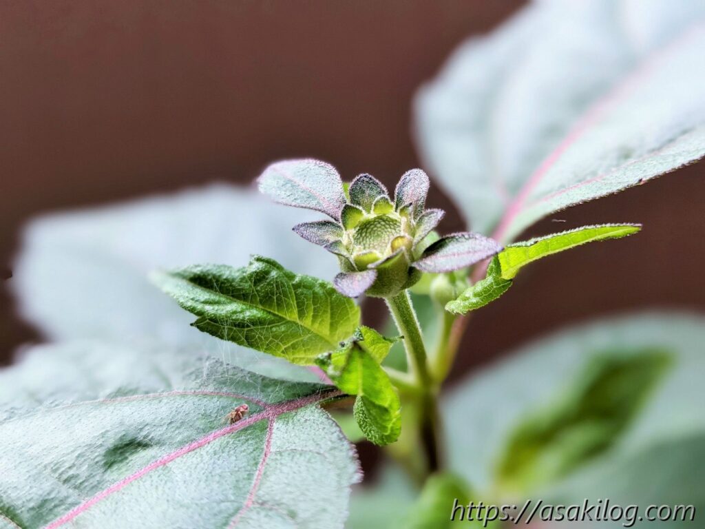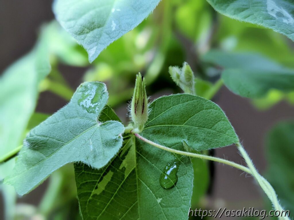 7月1日、ついに蕾らしきものを発見!GooglePixelで写真撮ったら、ふわふわの産毛まで撮れちゃった。