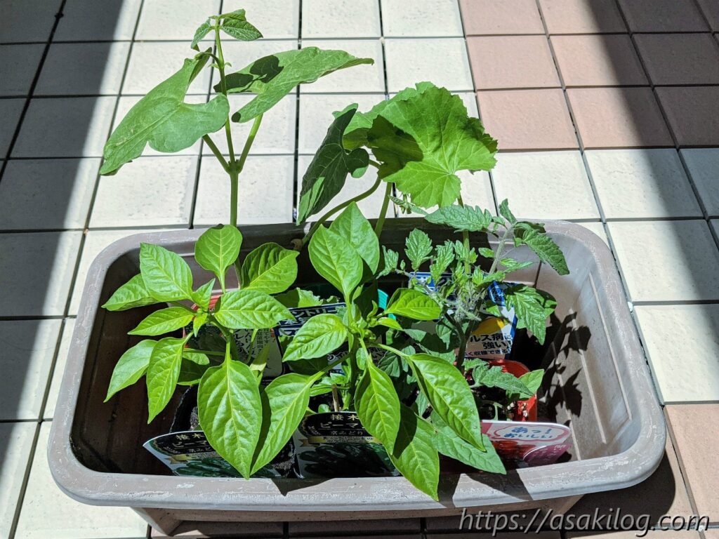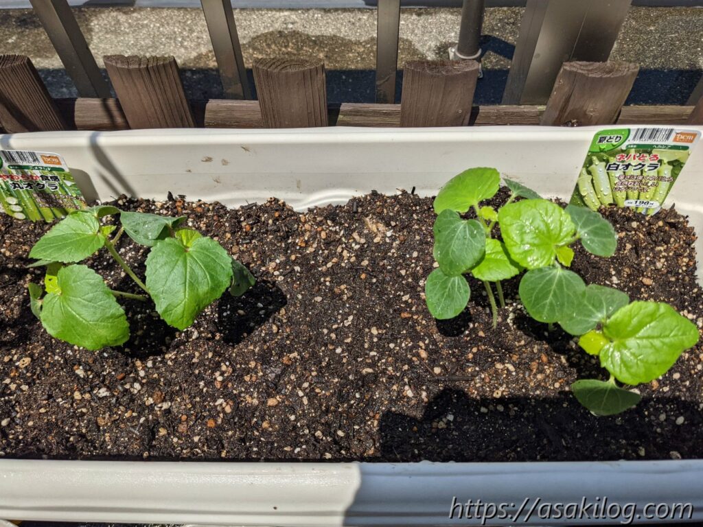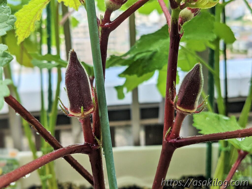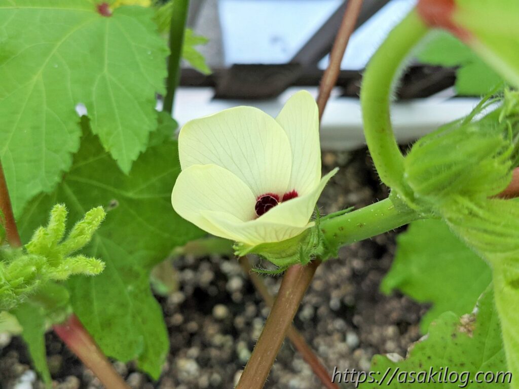 去年オクラを育てて楽しかったので、今年も育ててみることに。5月下旬に白オクラ・丸オクラ・赤オクラの3つの苗を購入しました。