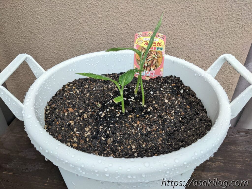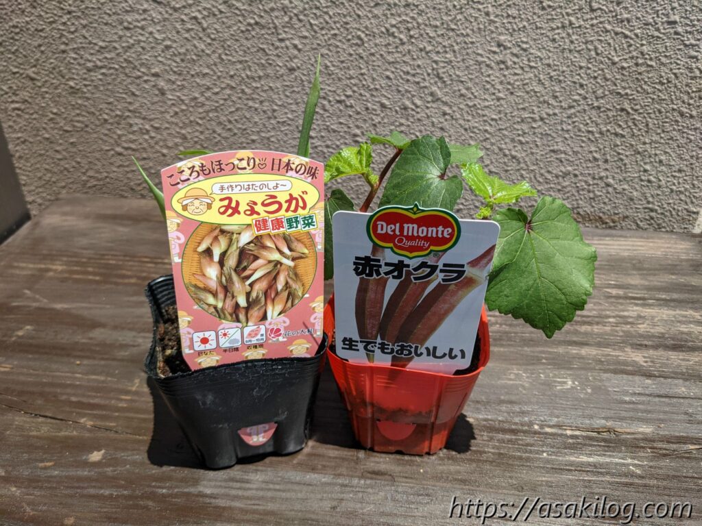 そして4月後半~5月末までに随時購入した苗は「パプリカ(赤+オレンジ)、おくら(白+丸+赤)、プチトマト(夏あま黄)、ミョウガ」。ミョウガを育てるのも今年が初めてです。