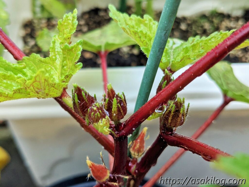 7月11日には、もう赤オクラの赤ちゃんが見えています。