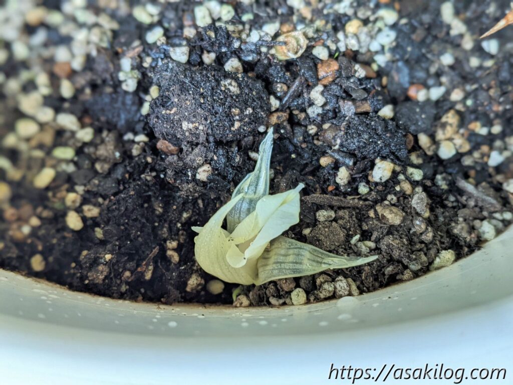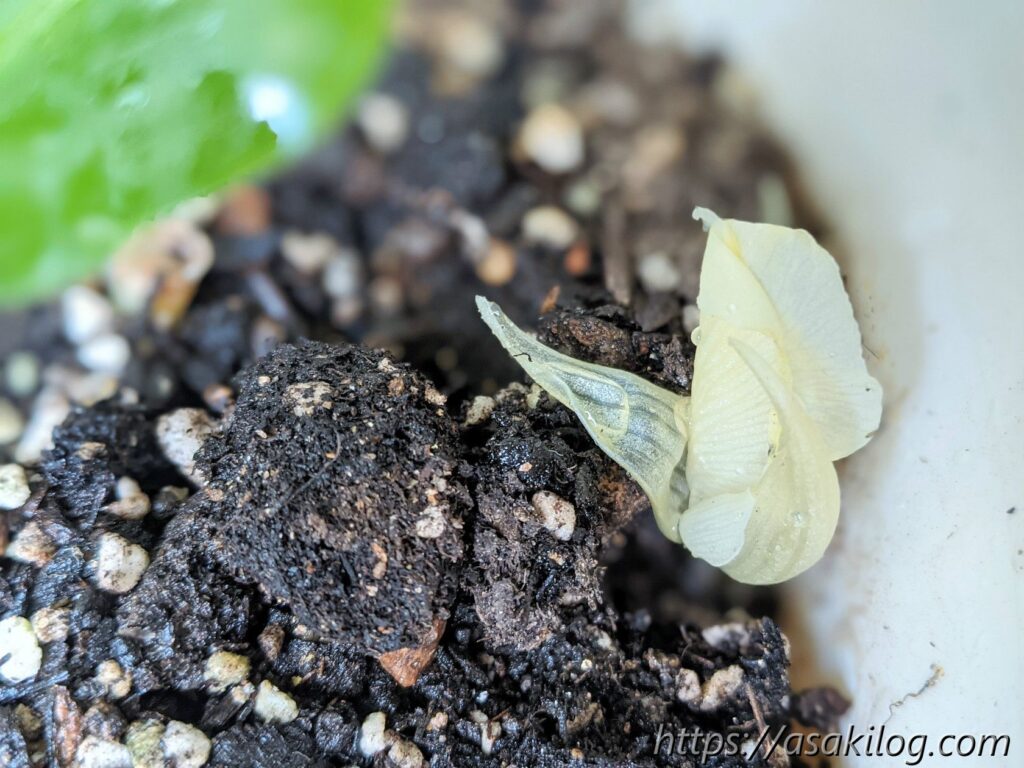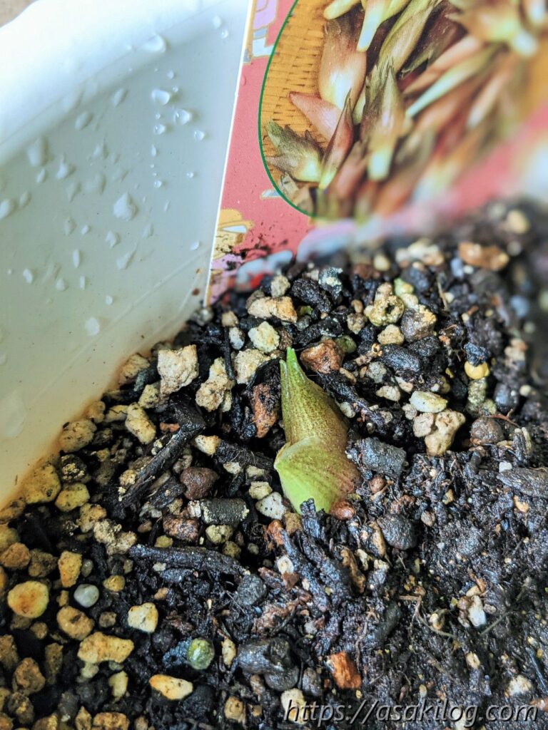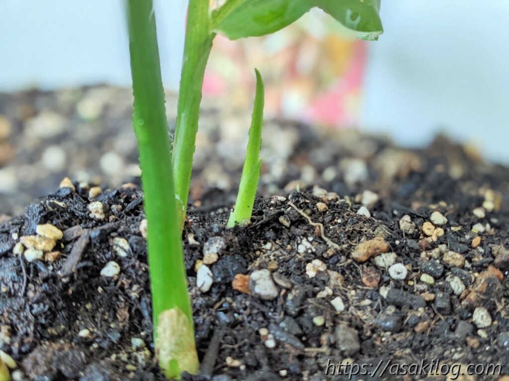 6月21日、少しずつ大きく育ち、6月25日には新芽らしいピョコンとしたものを発見。