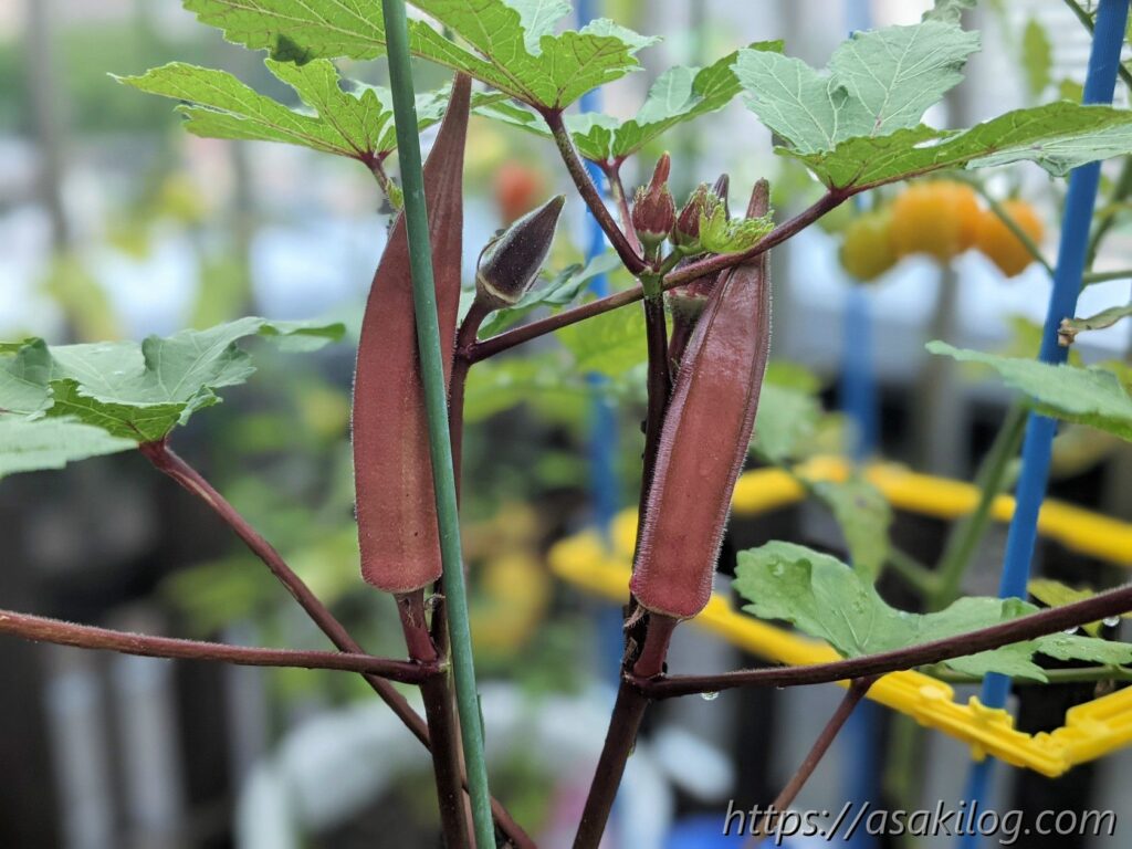 その後7月16日には、ついに収穫時に! 赤オクラの花が咲いてから9日で収穫できました。