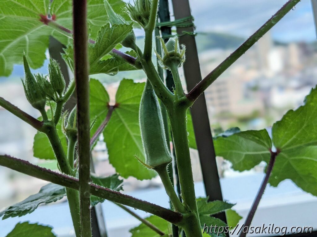 7月16日には、赤ちゃんオクラが見えるようになり、7月18日には間もなく収穫時です。