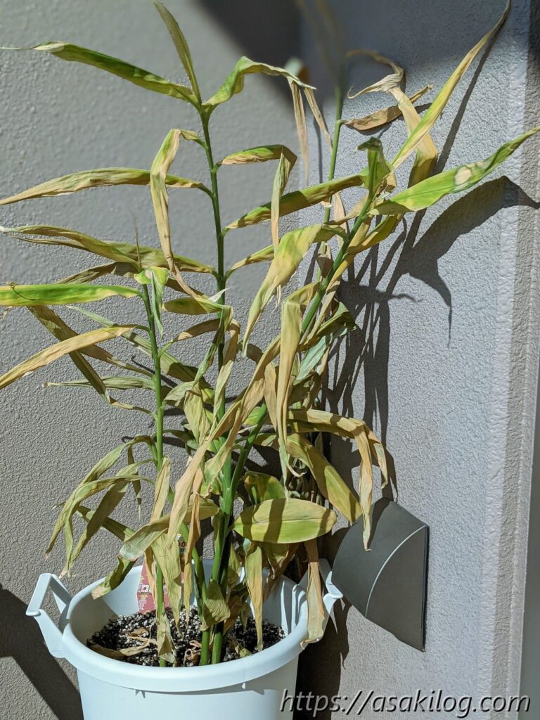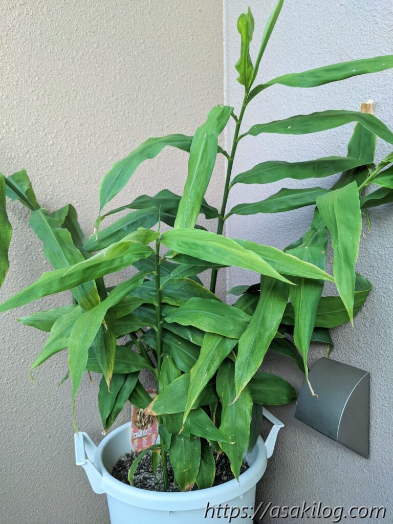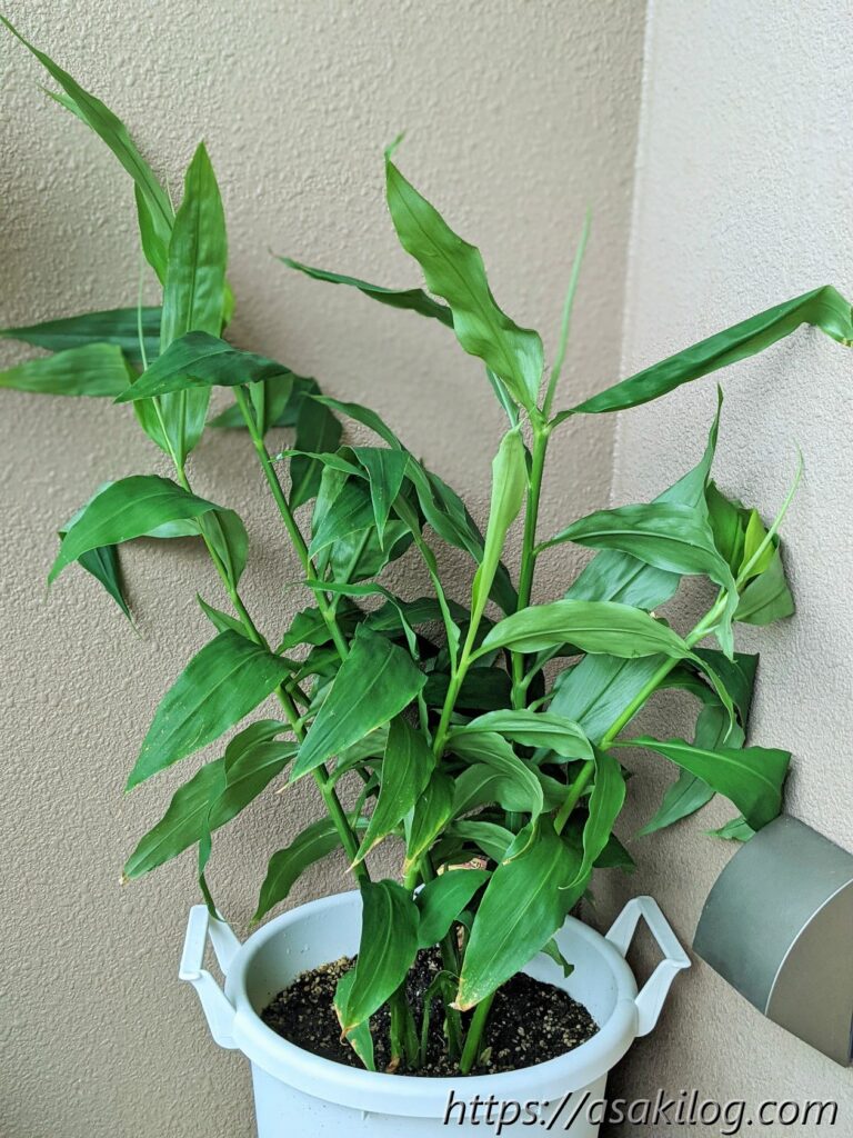 ミョウガを育てる環境は日陰の方が良いそうなので、屋根のあるベランダで育てました。