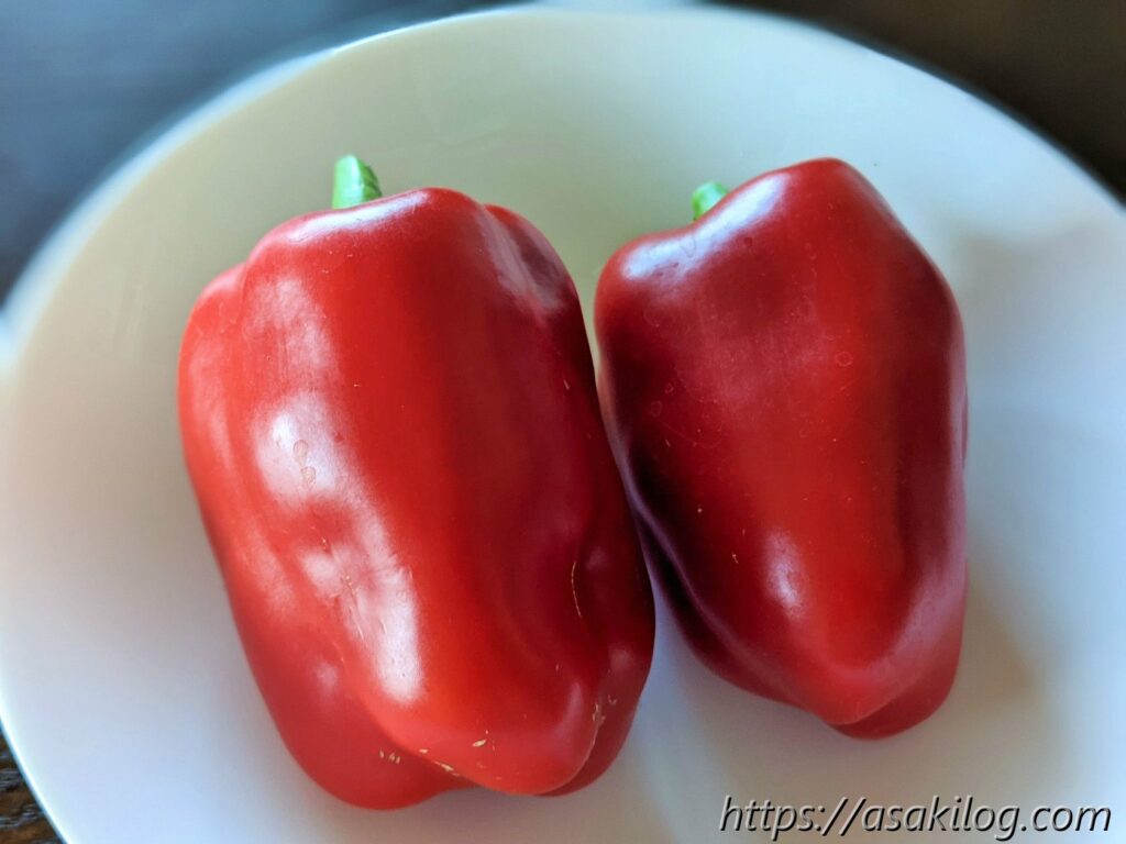 6月29日、だいぶ大きくなりましたが、スーパーで購入した赤パプリカと比較すると、やはり小ぶりサイズです。