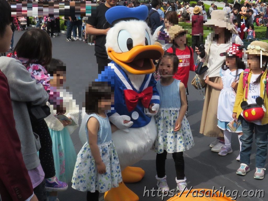 あまりにも長ーい列に、うちの娘さん「ドナルドの写真だけでいい」とのこと。一緒に撮影するのは諦めました。