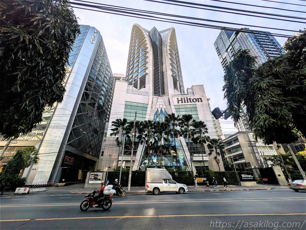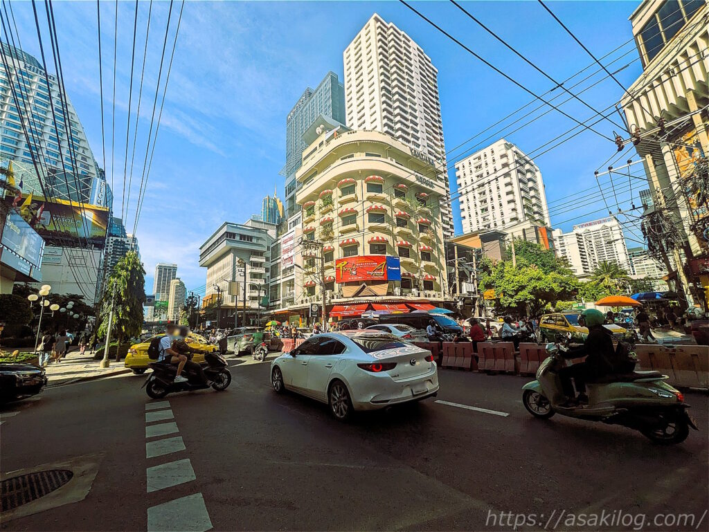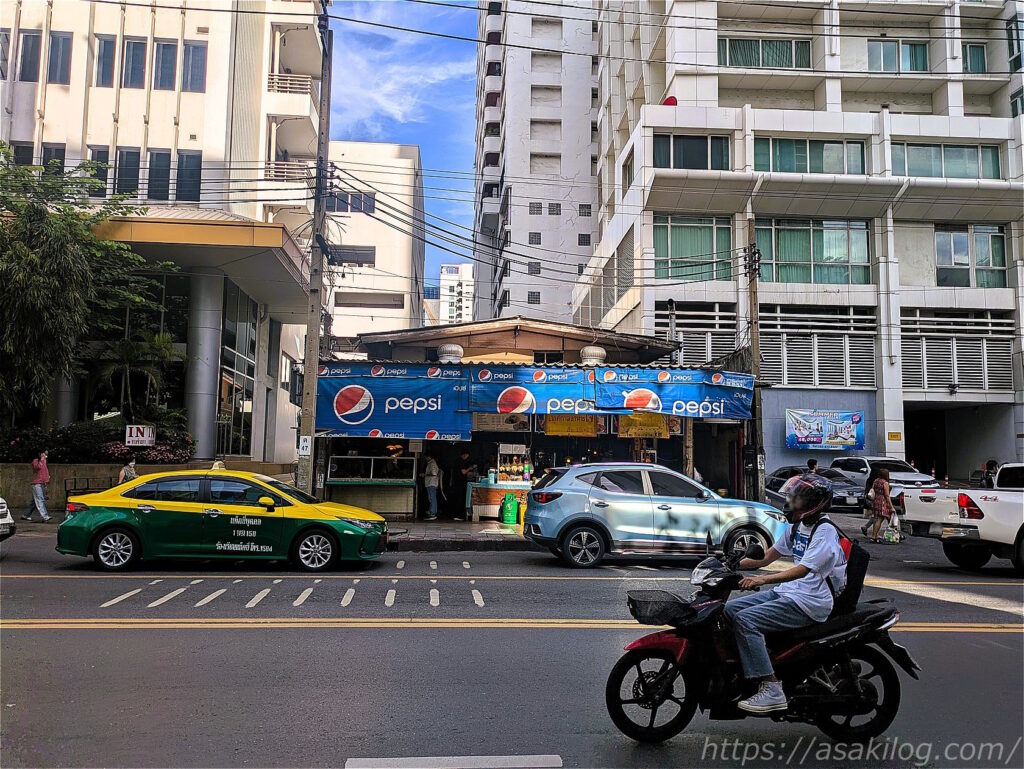 腹ごしらえができたら、最寄りのスクンビット駅に移動。道路の反対側に滞在しているホテルが見えました。