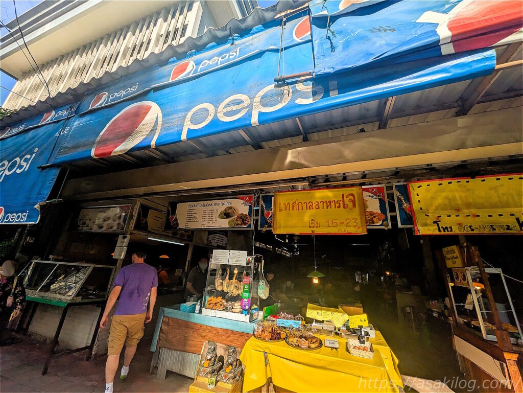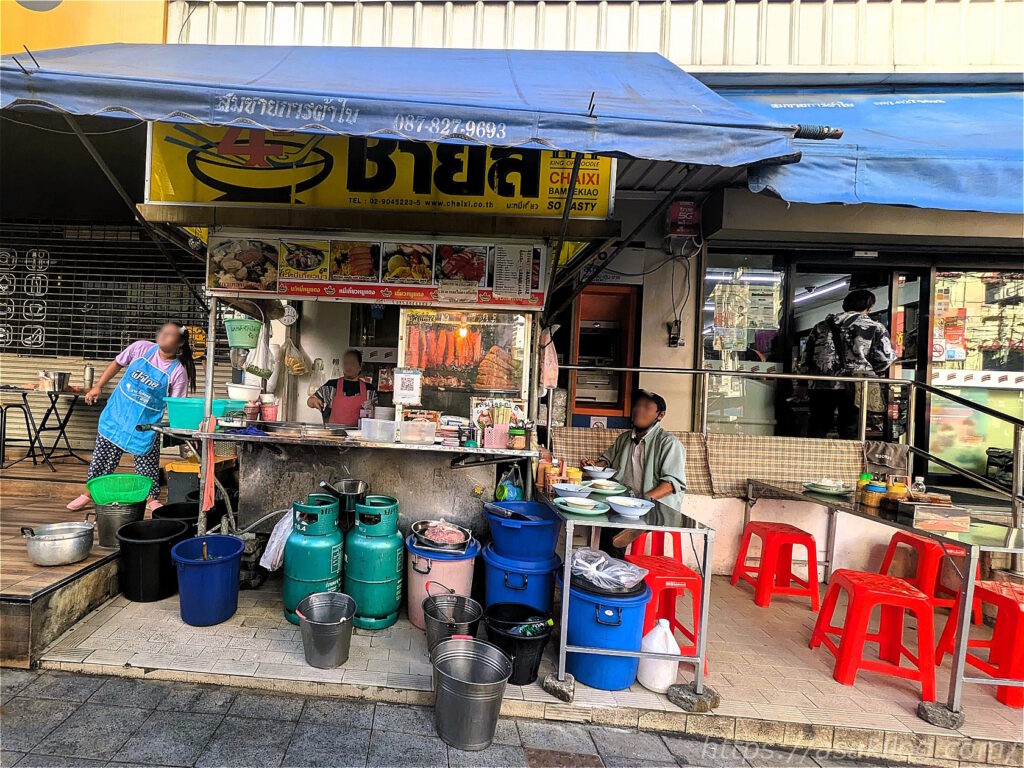 横断歩道を渡って向かうと、タイのローカルフードのお店でたくさんの人達が食事しているじゃないですか! よし、ここで朝食を食べてみよう。